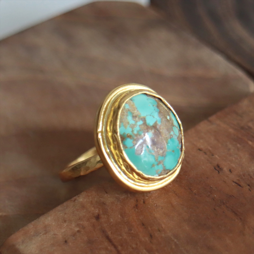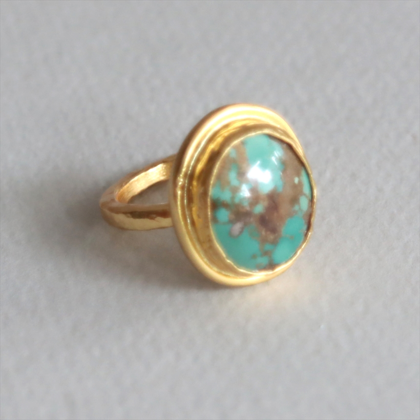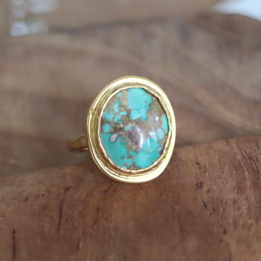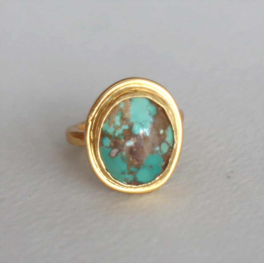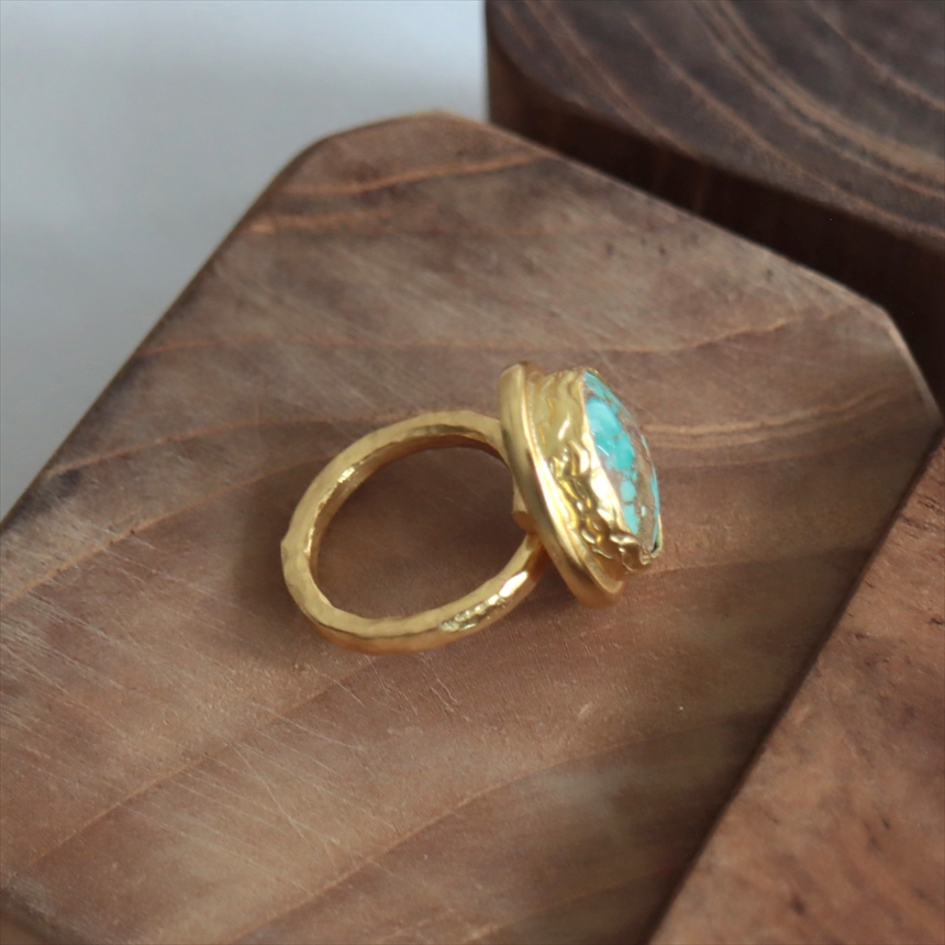 アルサメイア ターコイズ オーバルリング 天然石22Kゴールドプレーテッド トルコジュエリー