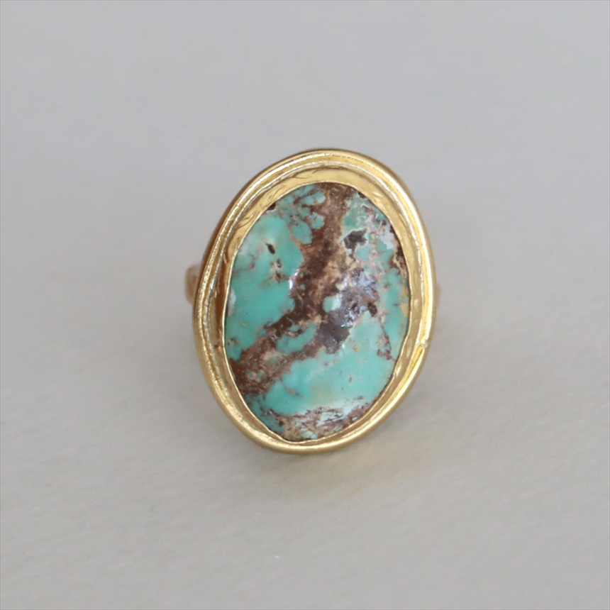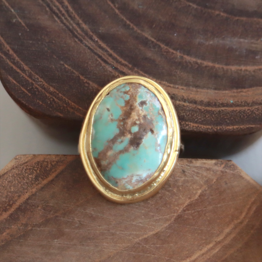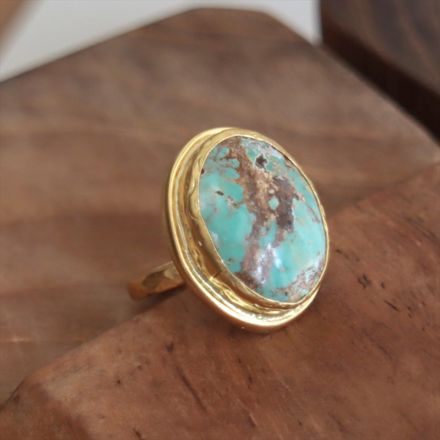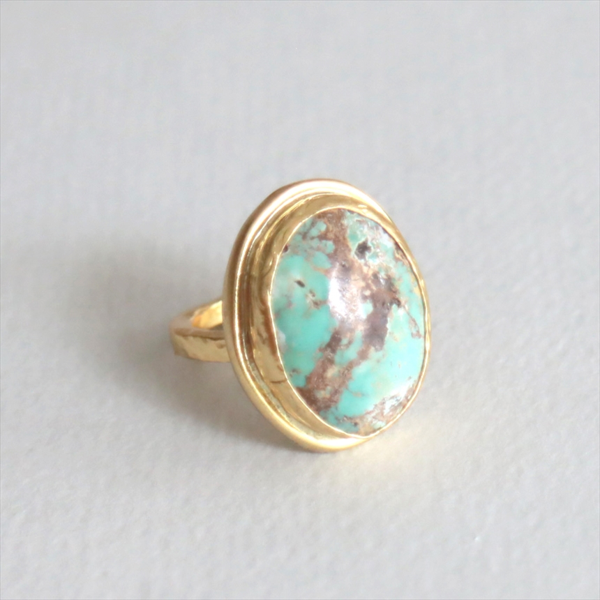 アルサメイア ターコイズ オーバルリング 天然石22Kゴールドプレーテッド トルコジュエリー