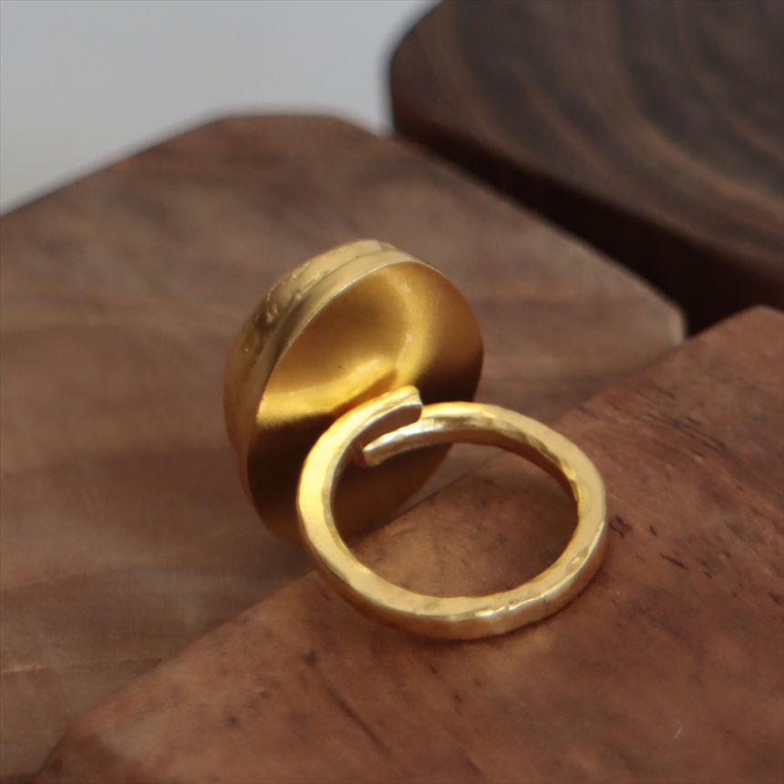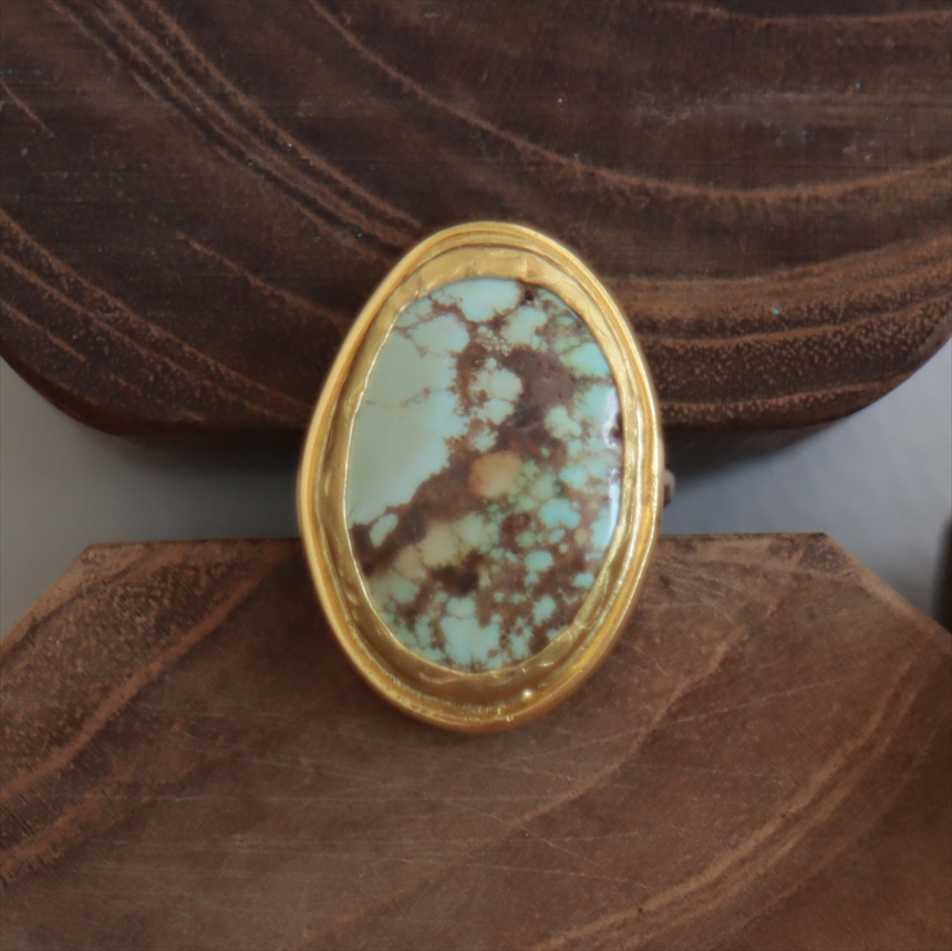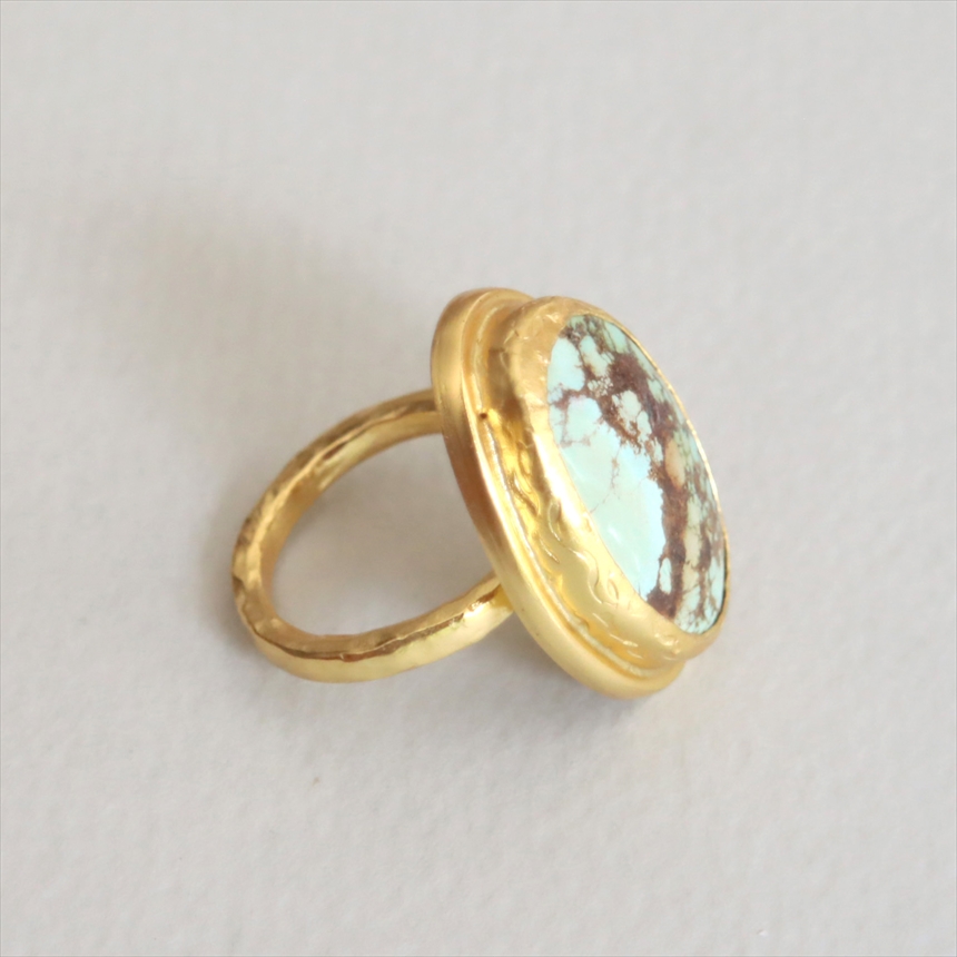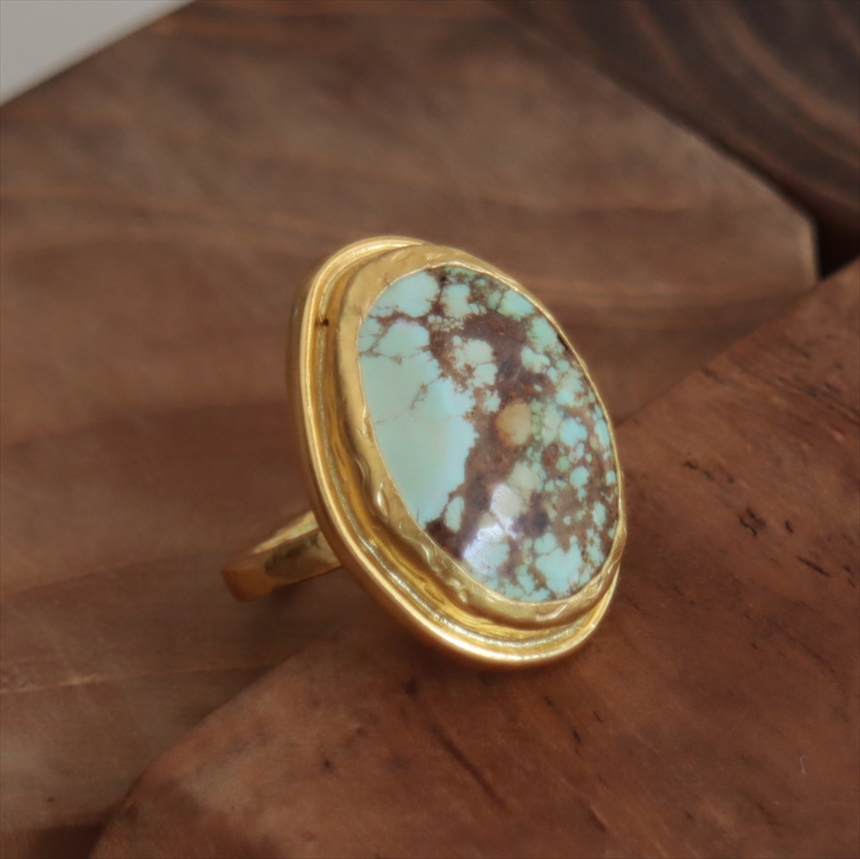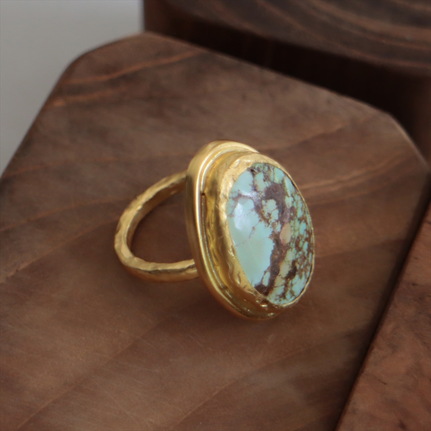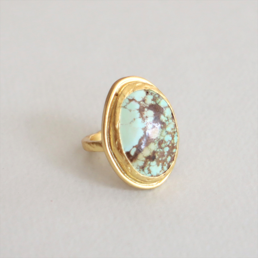 アルサメイア ターコイズ オーバルリング カボション 天然石22Kゴールドプレーテッド トルコジュエリー