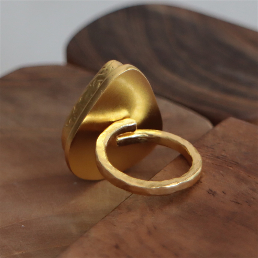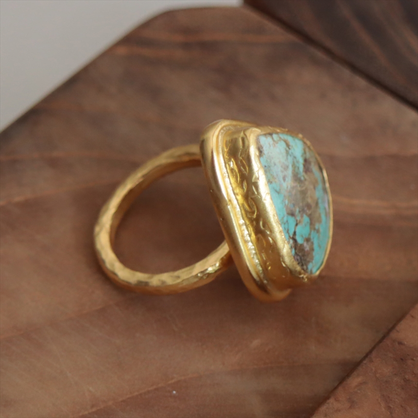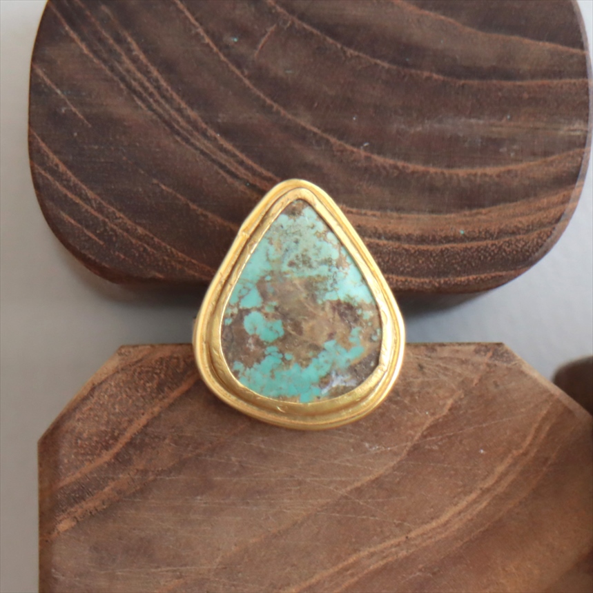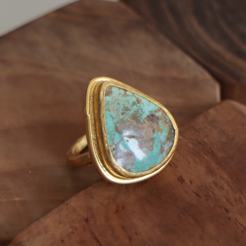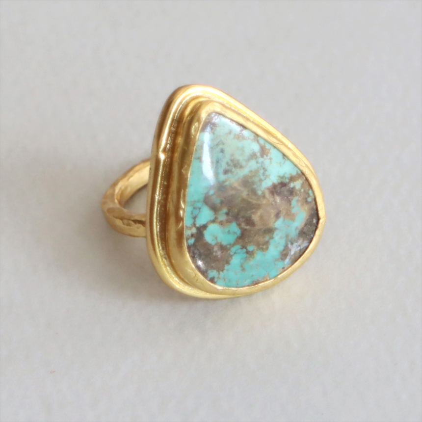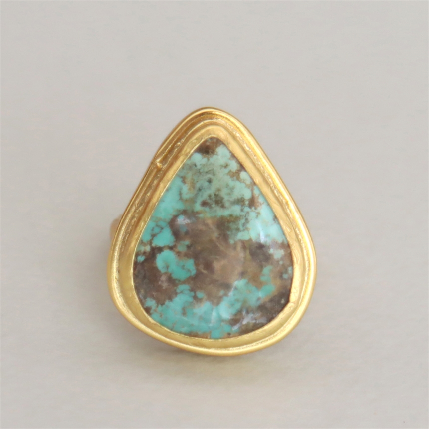 アルサメイア ターコイズ ドロップリング 天然石22Kゴールドプレーテッド トルコジュエリー