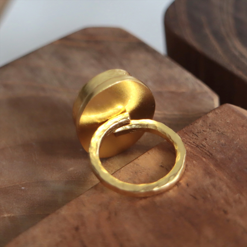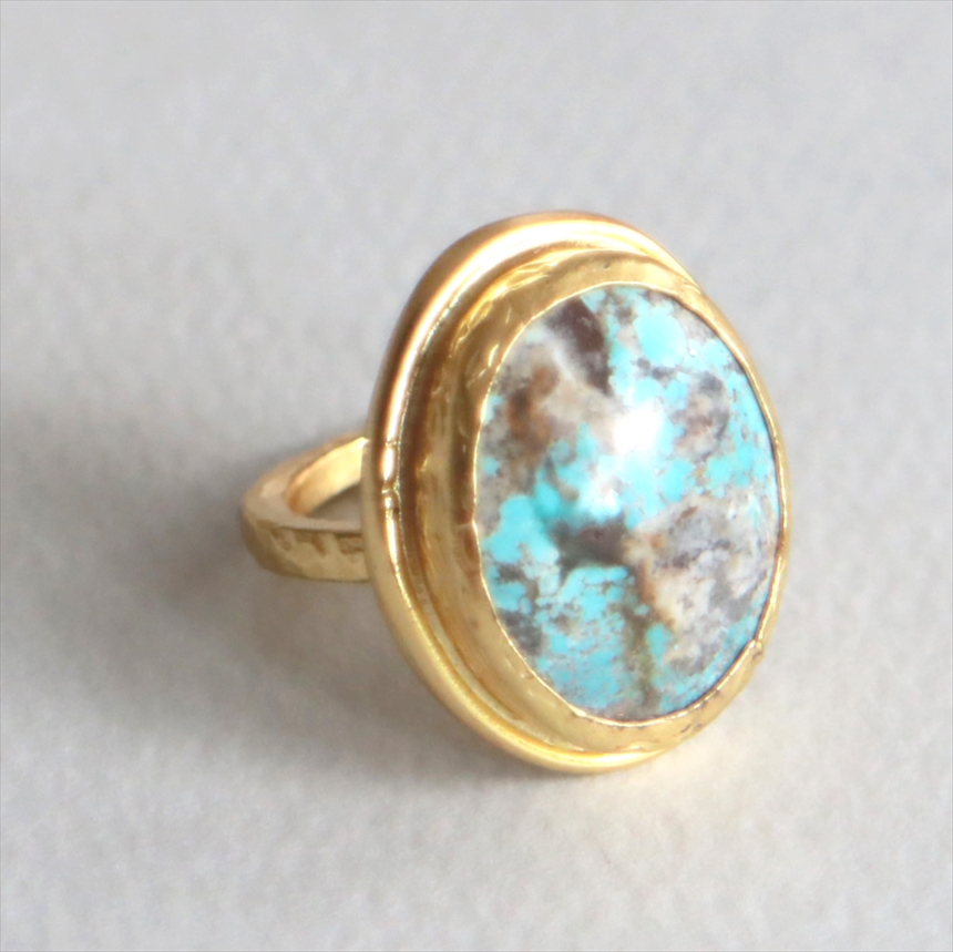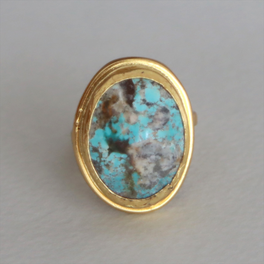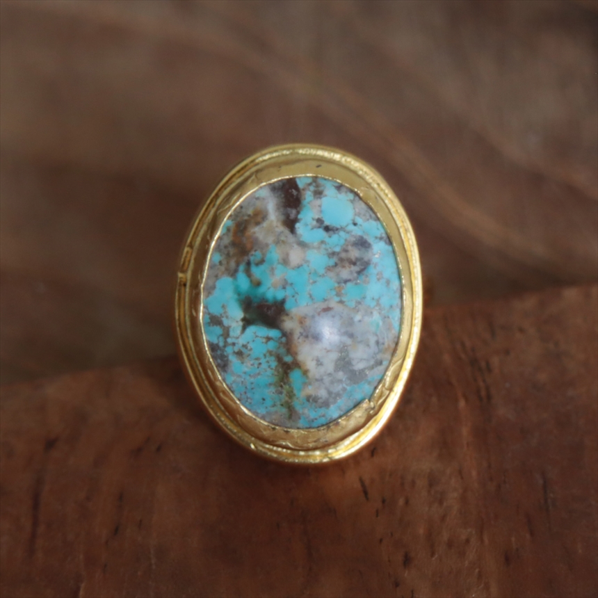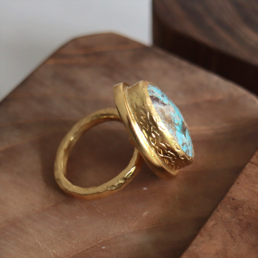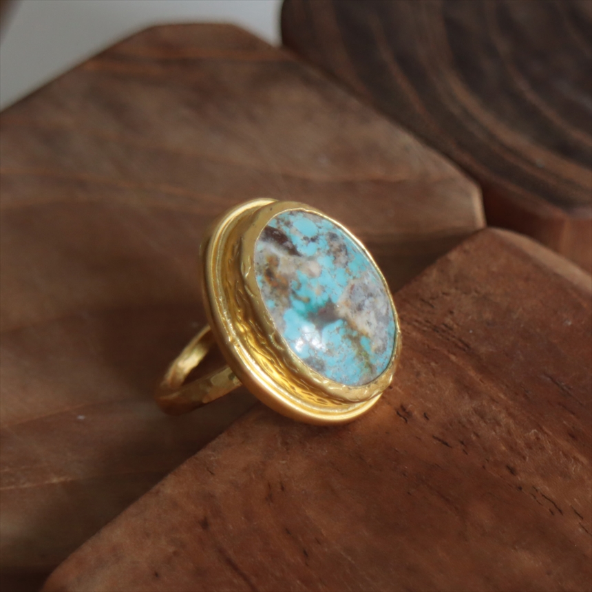 アルサメイア ターコイズ オーバルリング 天然石22Kゴールドプレーテッド トルコジュエリー