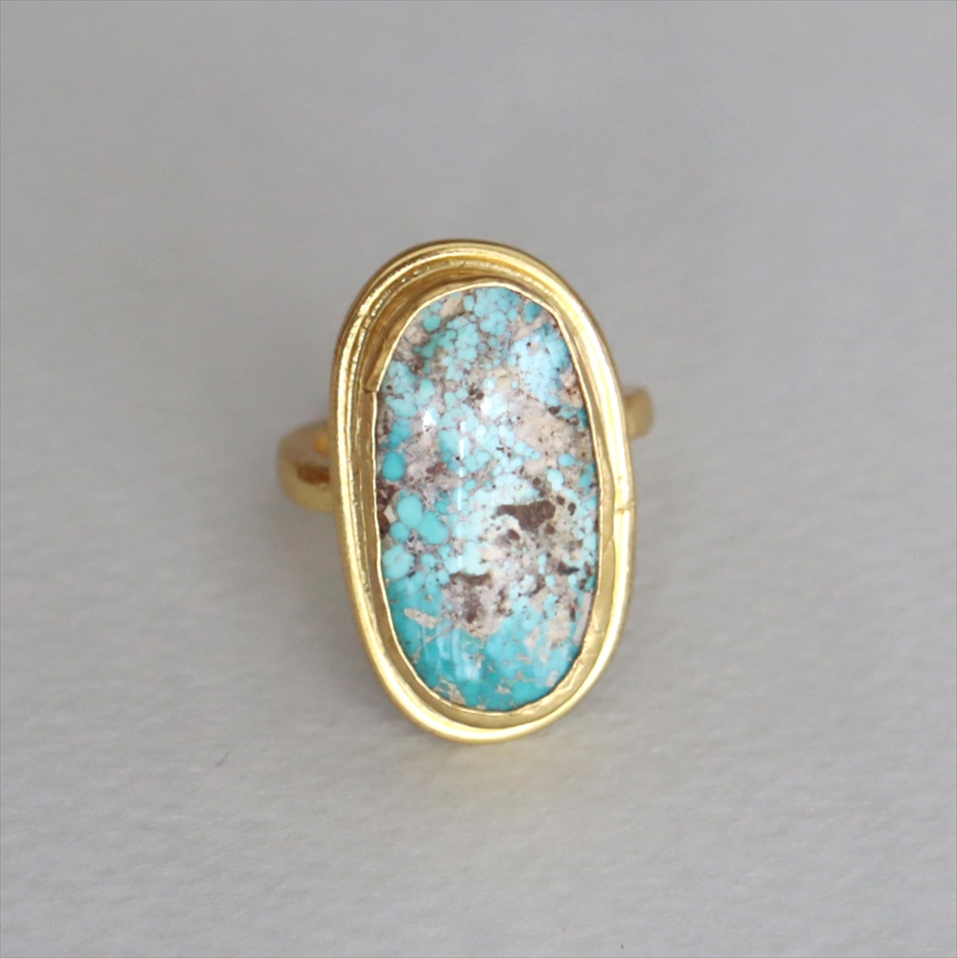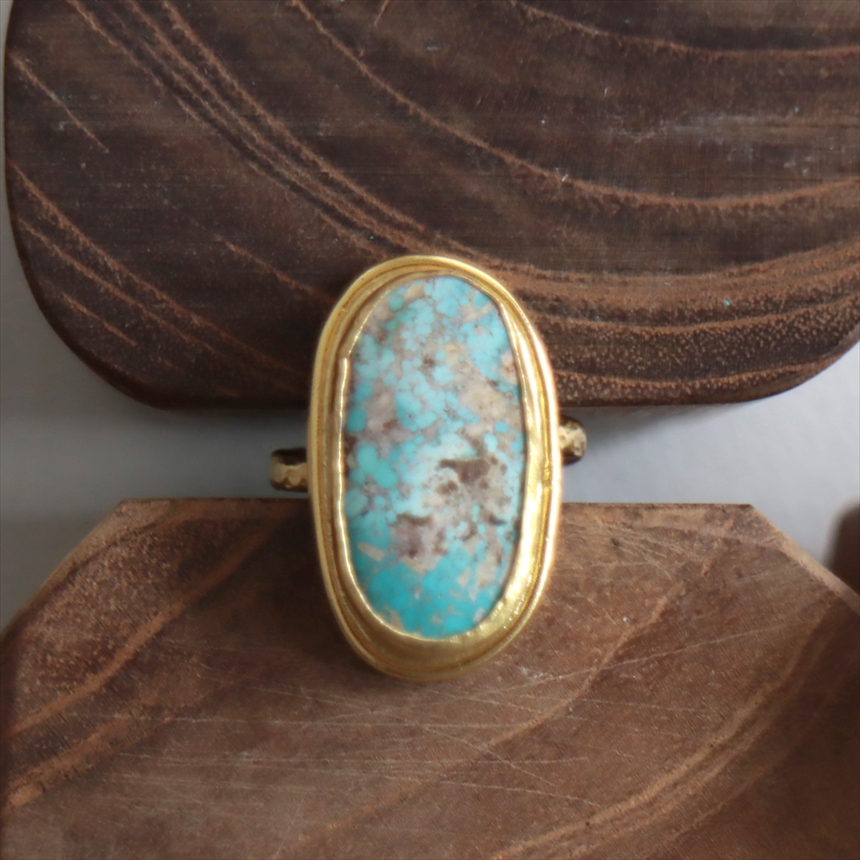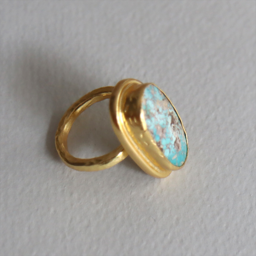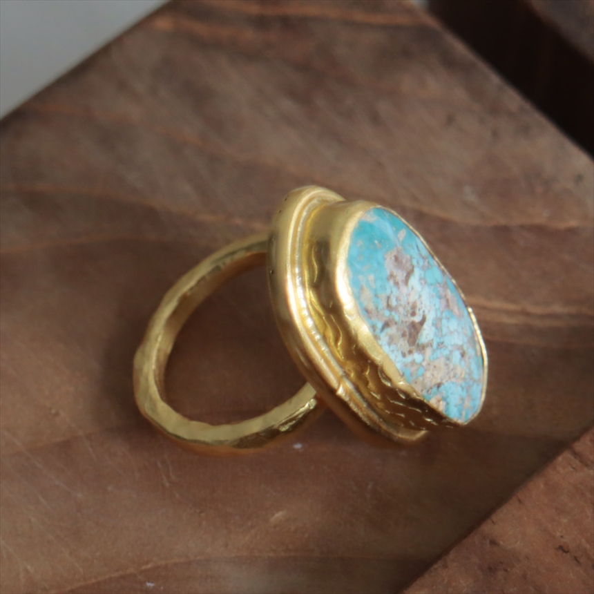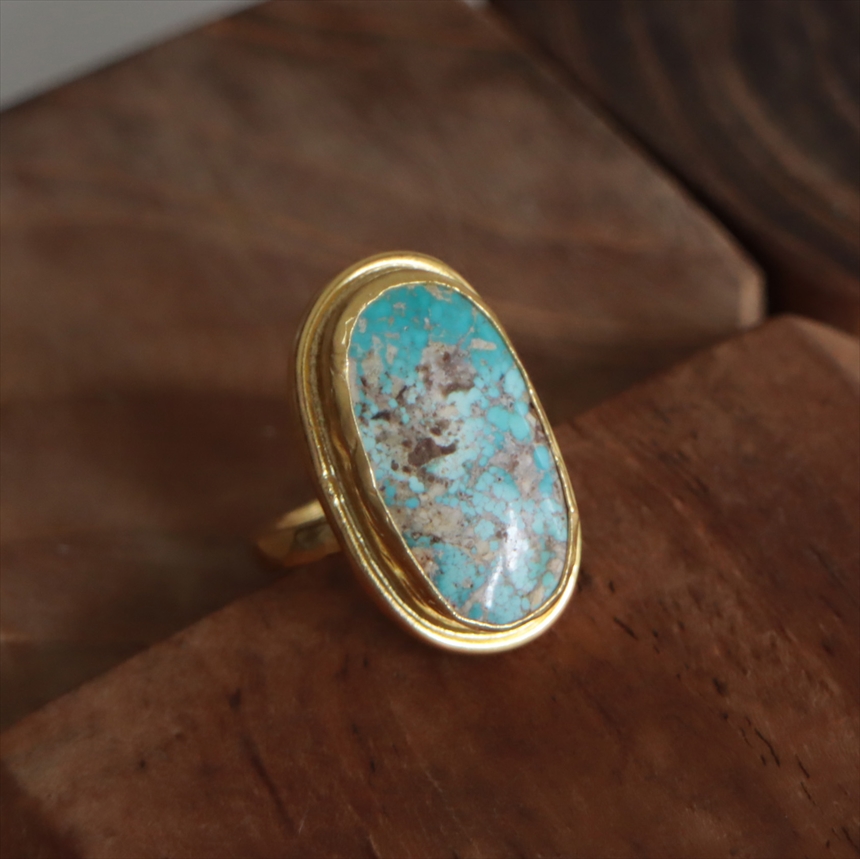 アルサメイア ターコイズ オーバルリング 天然石22Kゴールドプレーテッド トルコジュエリー