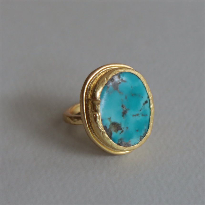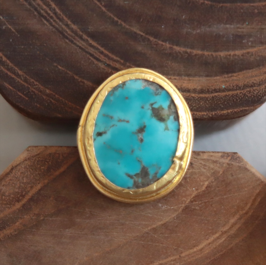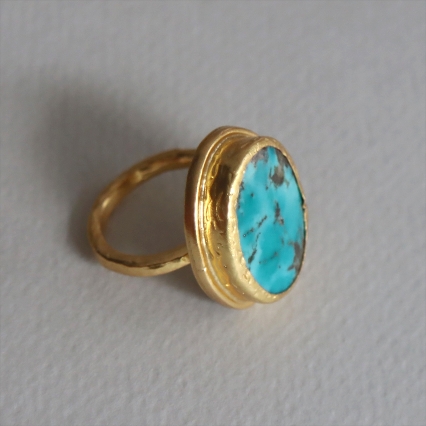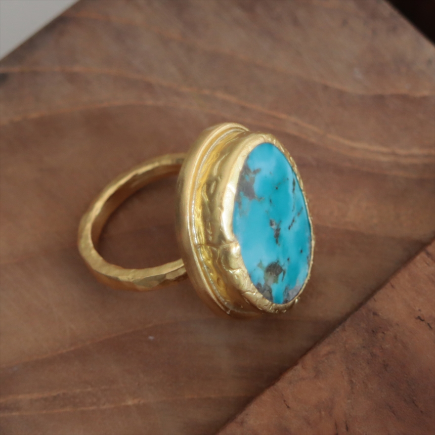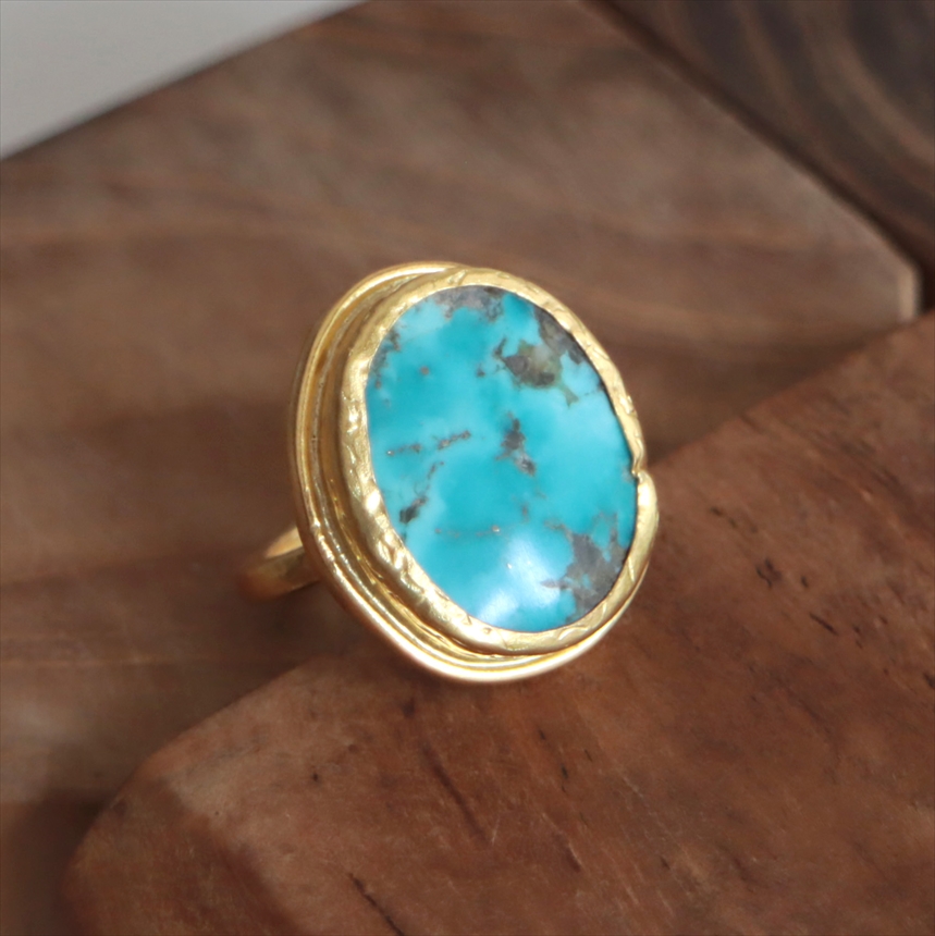 アルサメイア ターコイズ オーバルリング 天然石22Kゴールドプレーテッド トルコジュエリー