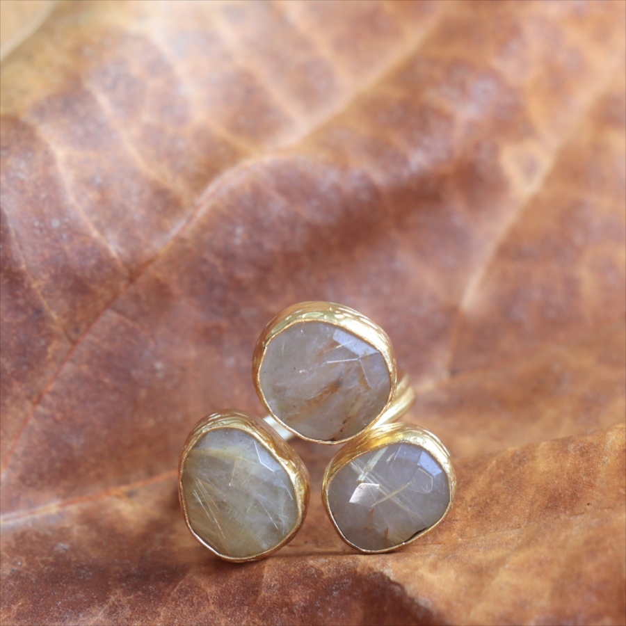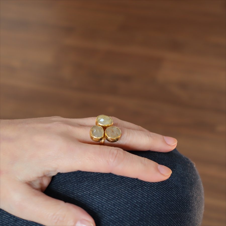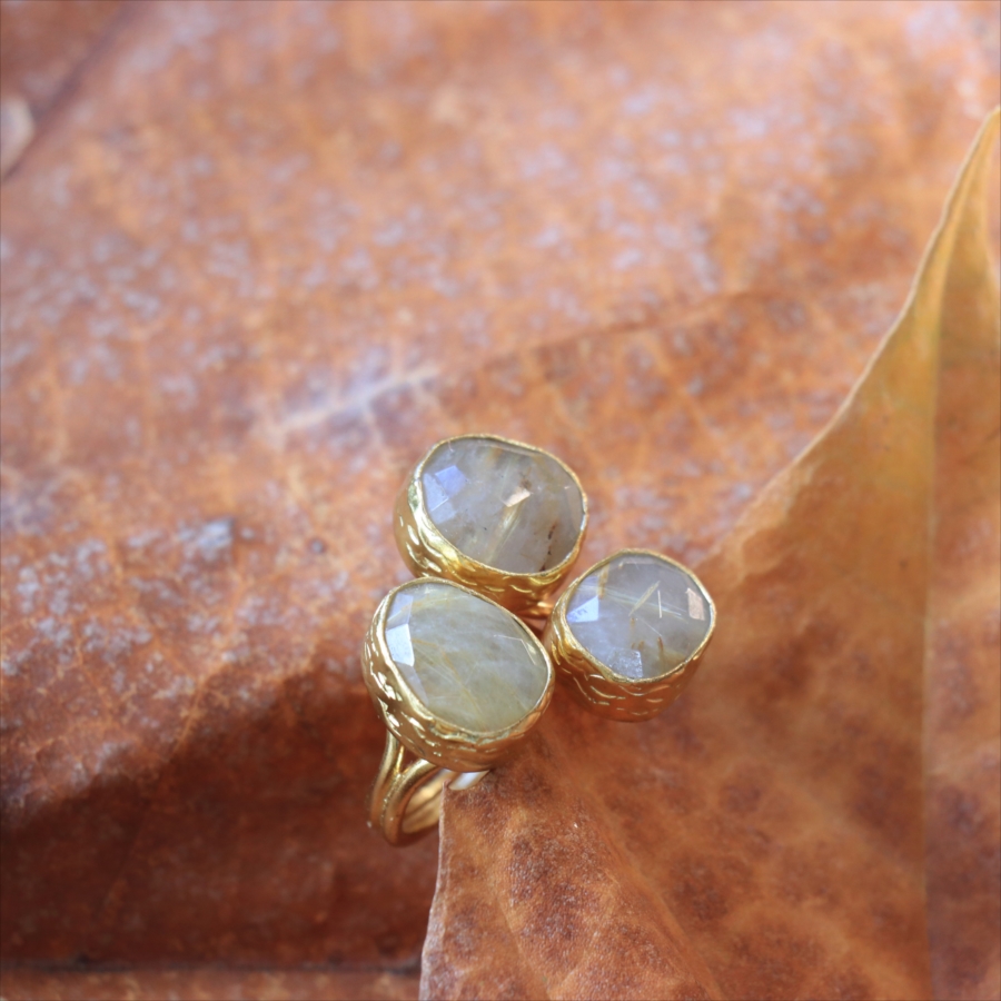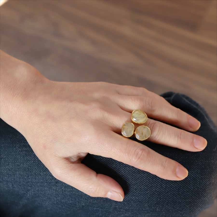 三つの石のリング ルチルクォーツ 天然石 アルサメイア 1点もの