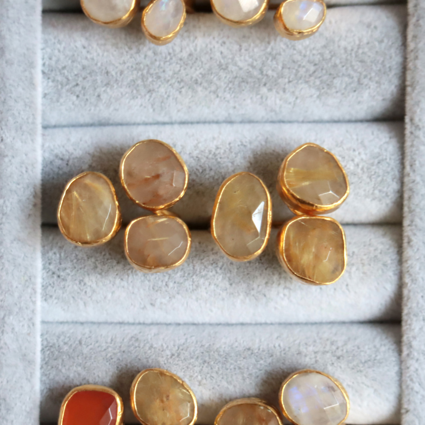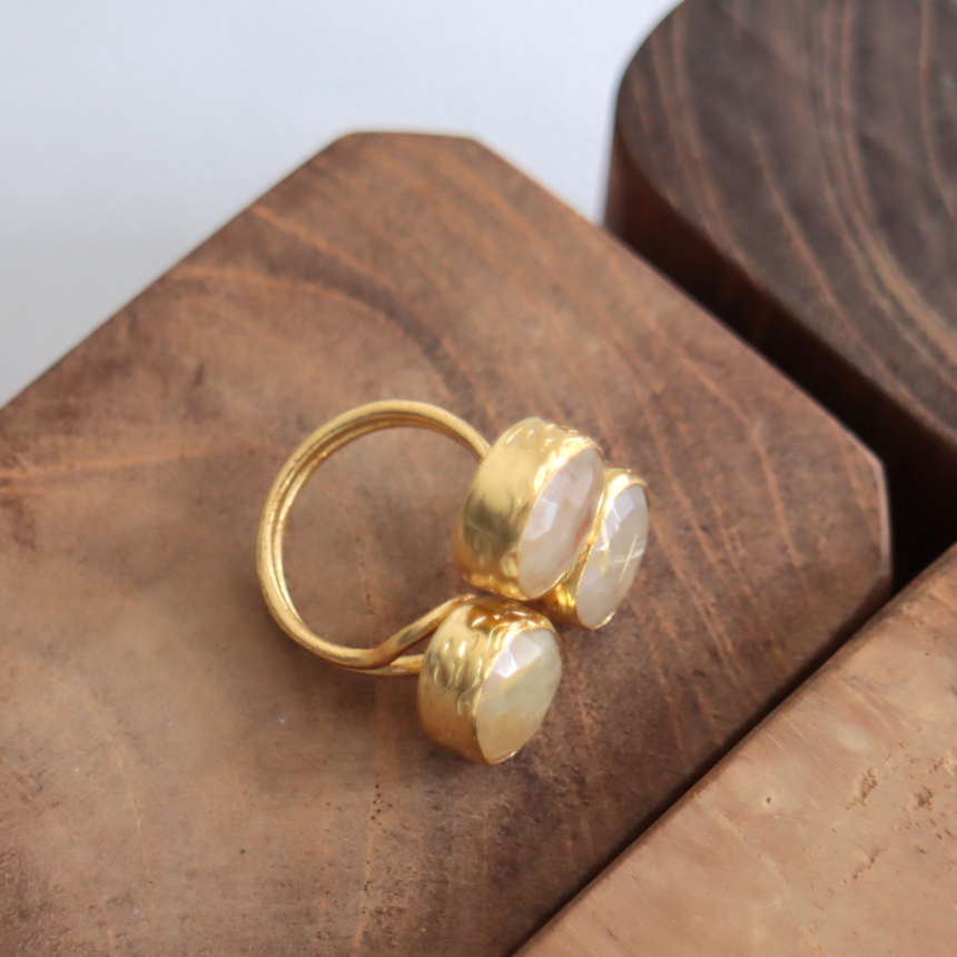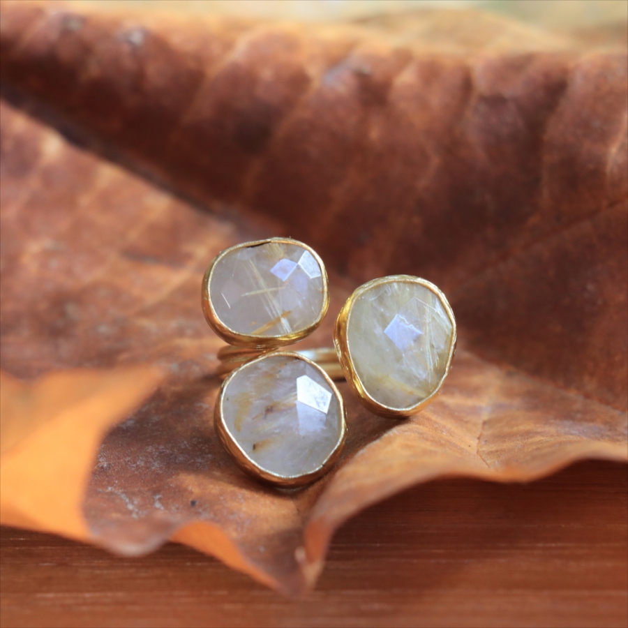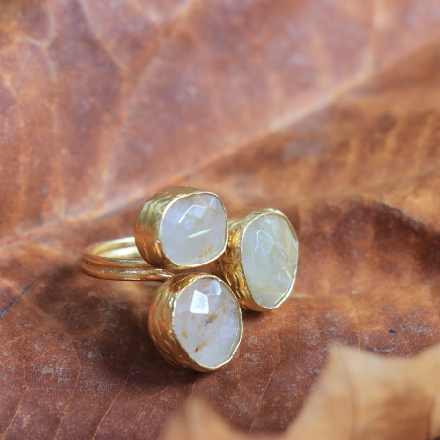 三つの石のリング ルチルクォーツ 天然石 アルサメイア 1点もの