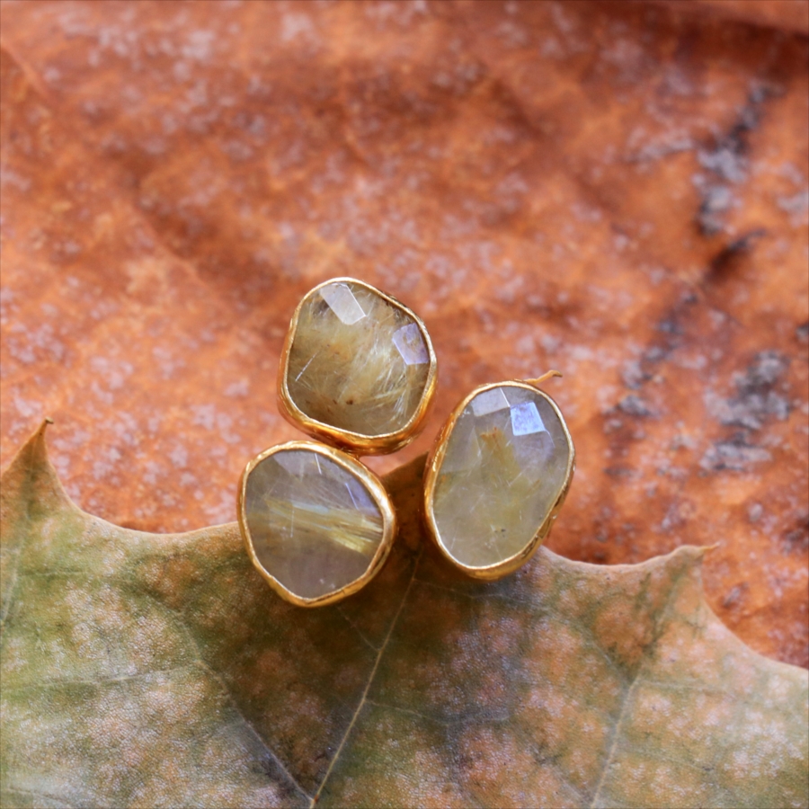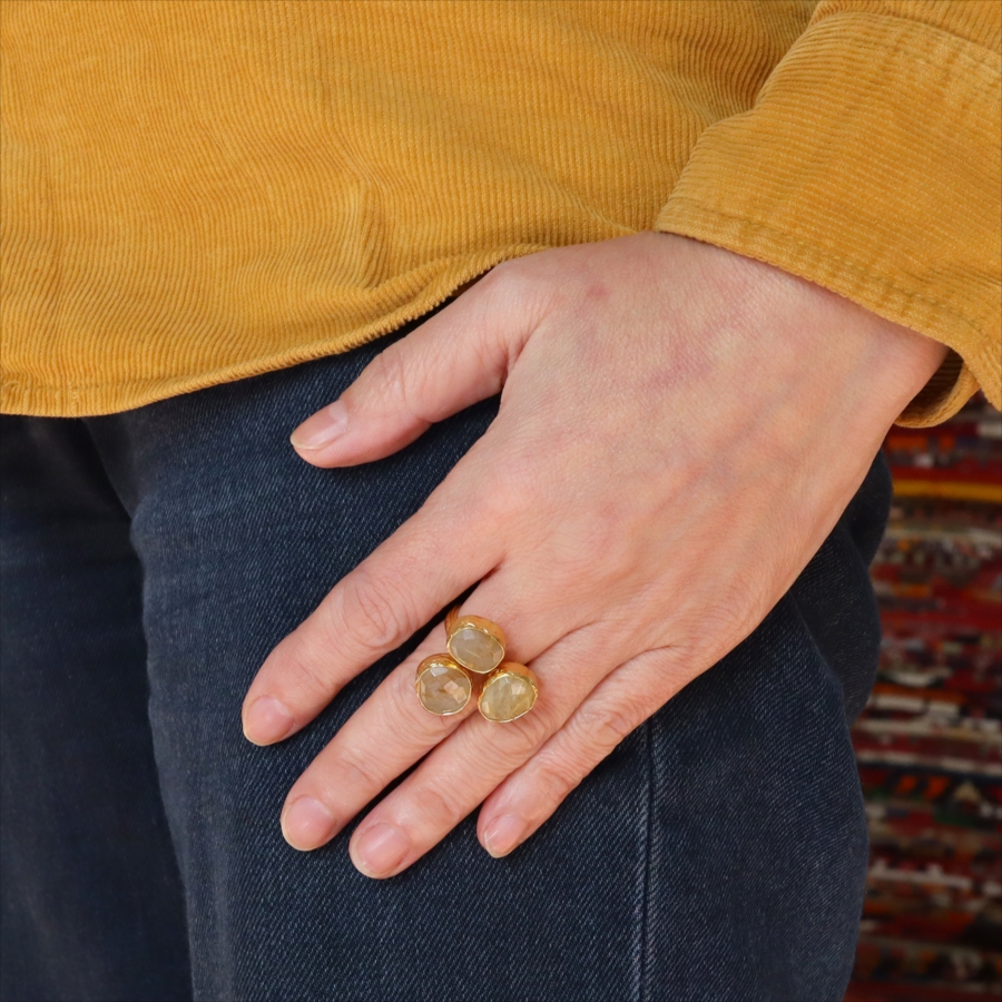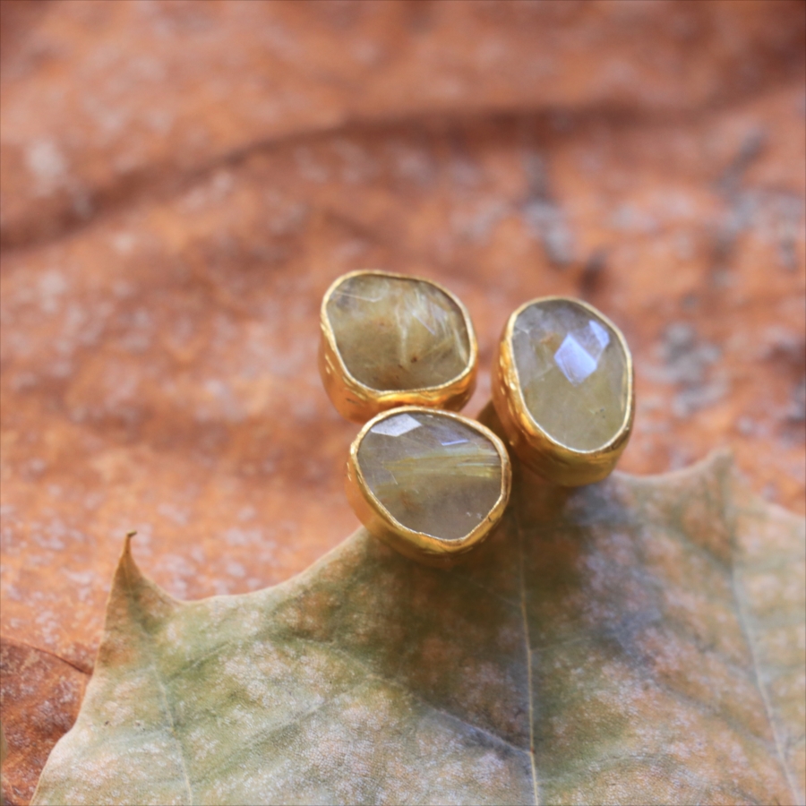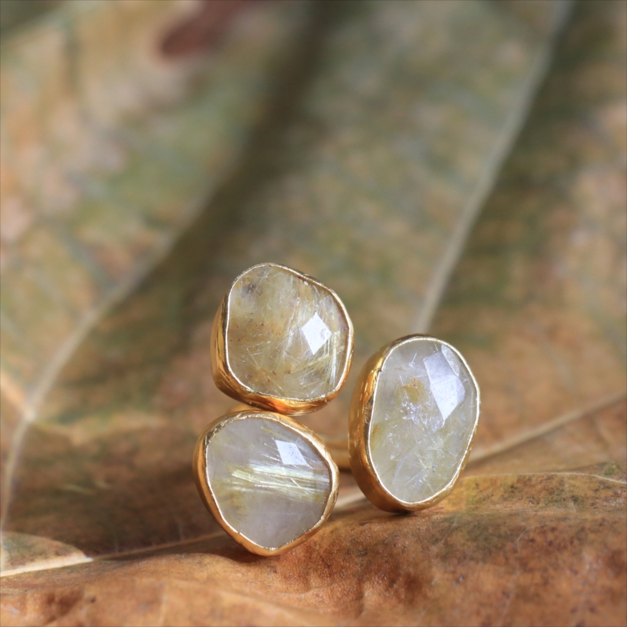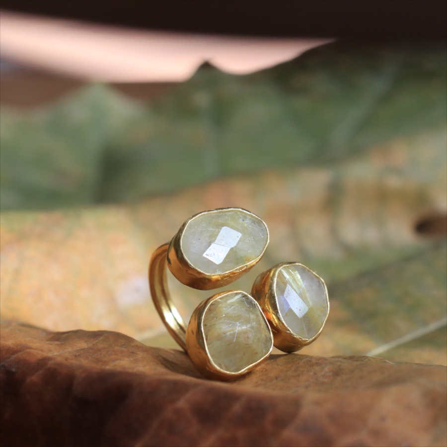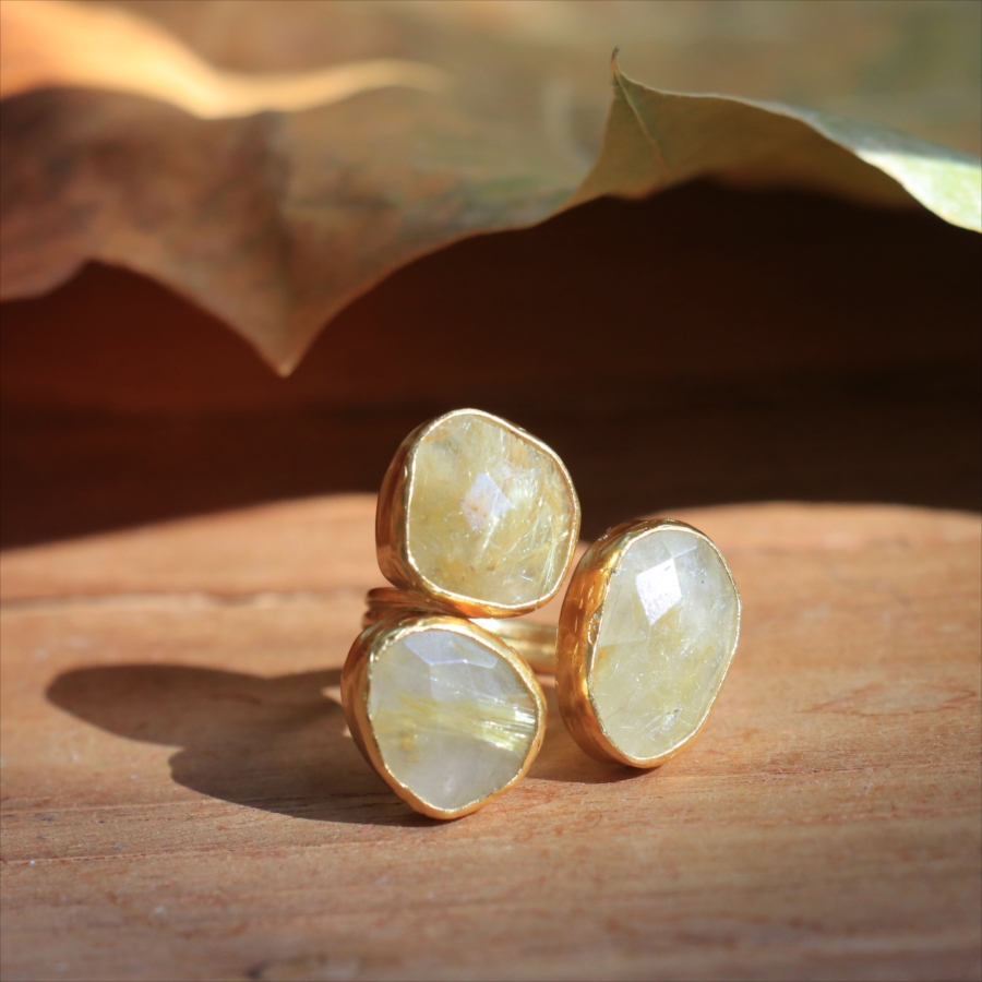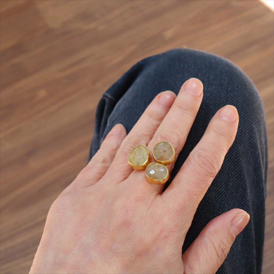 三つの石のリング ルチルクォーツ 天然石 アルサメイア 1点もの
