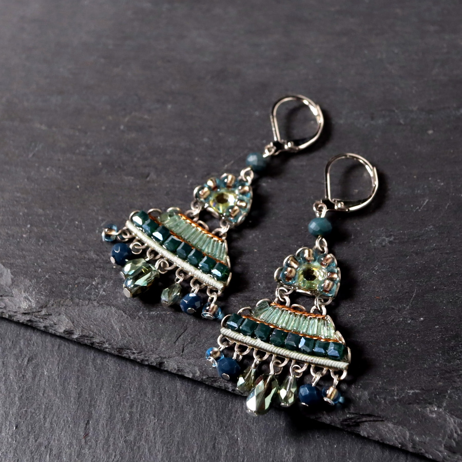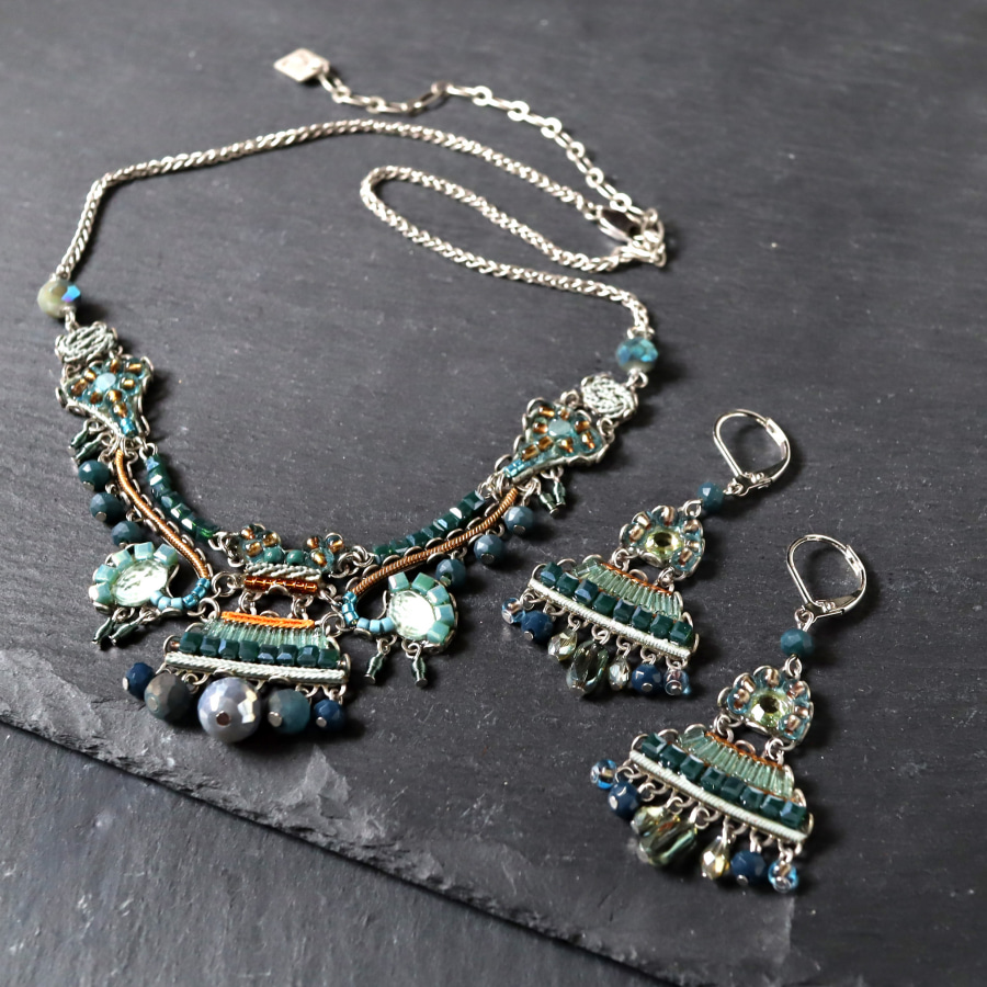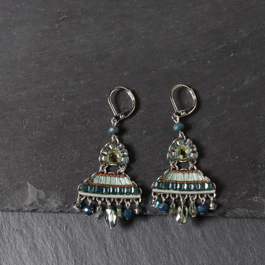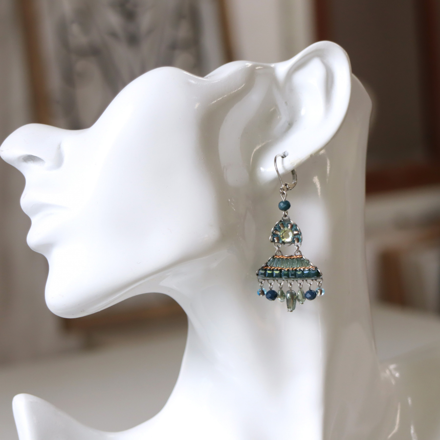 Moonlightという名の、グレイッシュなブルーグリーンのカラーが美しいシリーズ。メタリックなビーズが揺れてキラキラと輝きます。
