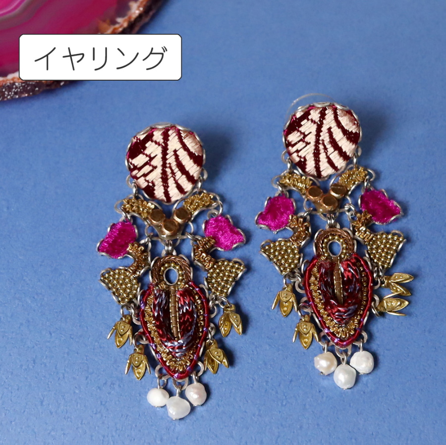 【アヤラ・バー Hip Collection 】 Hip Collectionは1970年代のヒッピー達のファッションを取り入れた、アヤラ・バーの人気のコレクションのひとつです。、布やリボン、ニット素材などを取り入れた、ユニークな組み合わせが特徴。カジュアルにも使いやすく、大ぶりで大胆なデザインがファンを惹きつけています。テクスチャの美しい小さなパーツのひとつひとつは、アヤラバーのアトリエで手作りされており、丁寧な仕上がりには目を見張るものがあります。