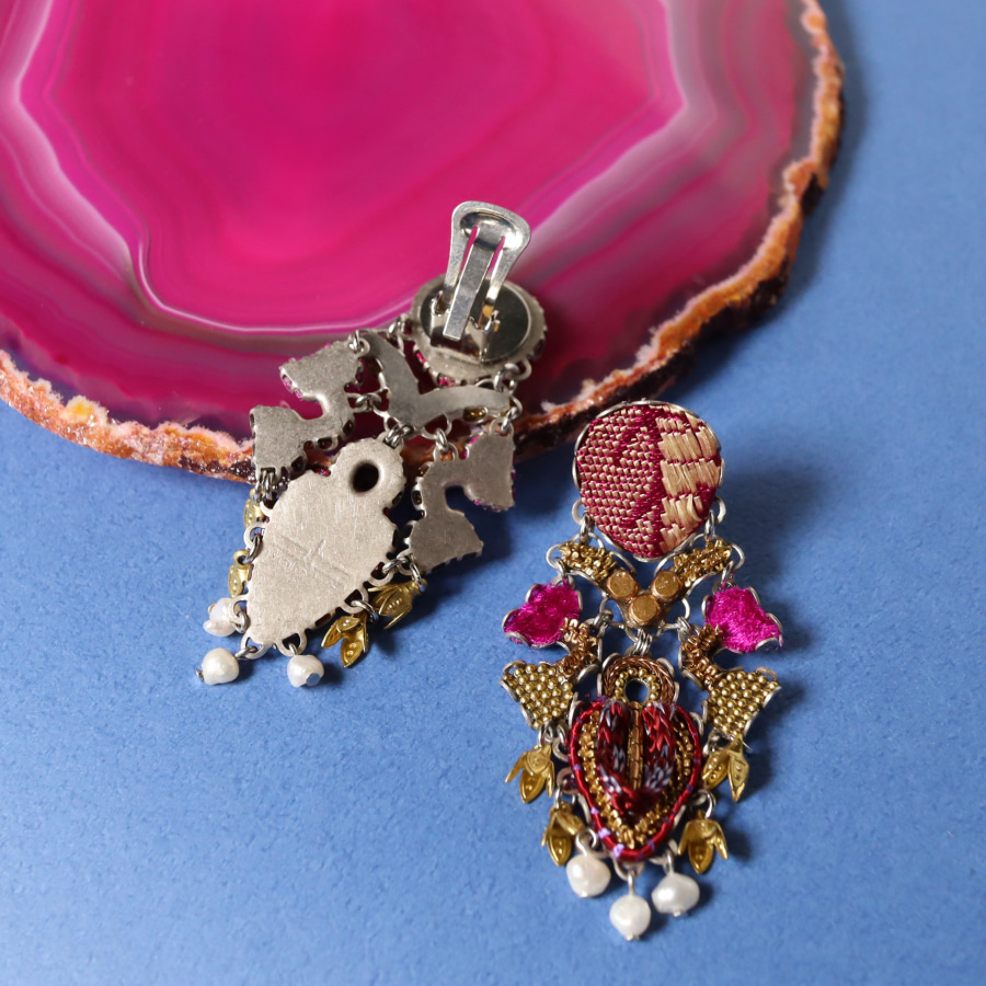 Ancient Royalty(古代の王族)という名の、深みあるフューシャピンクとゴールドの組み合わせが豪華で魅力のシリーズ。ベルベットの様な光沢がある風合いのファブリックにゴールドカラーの糸で細やかな刺繍が施されています。