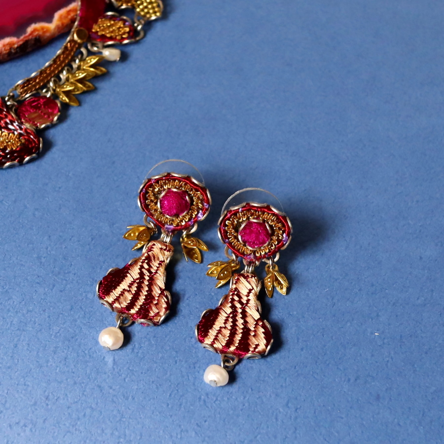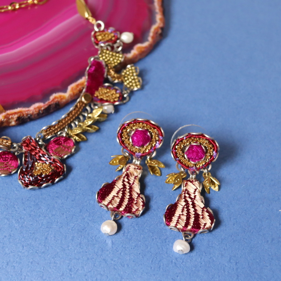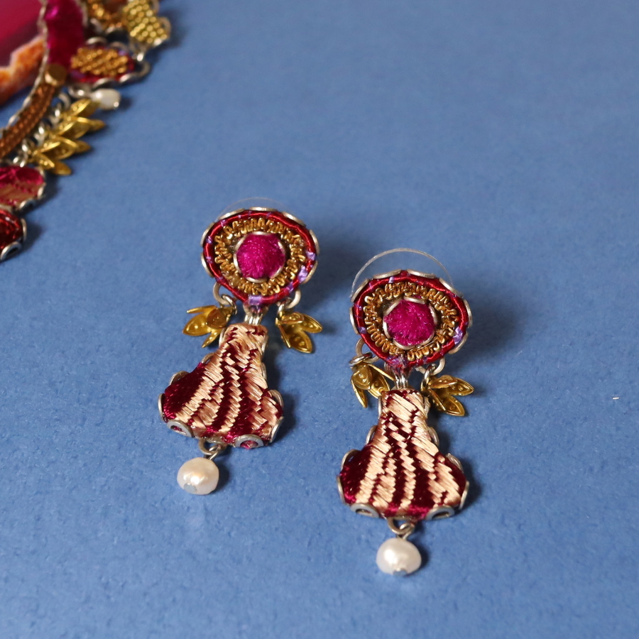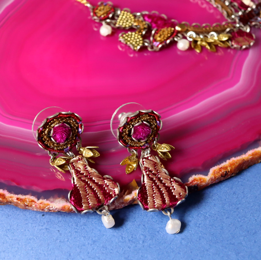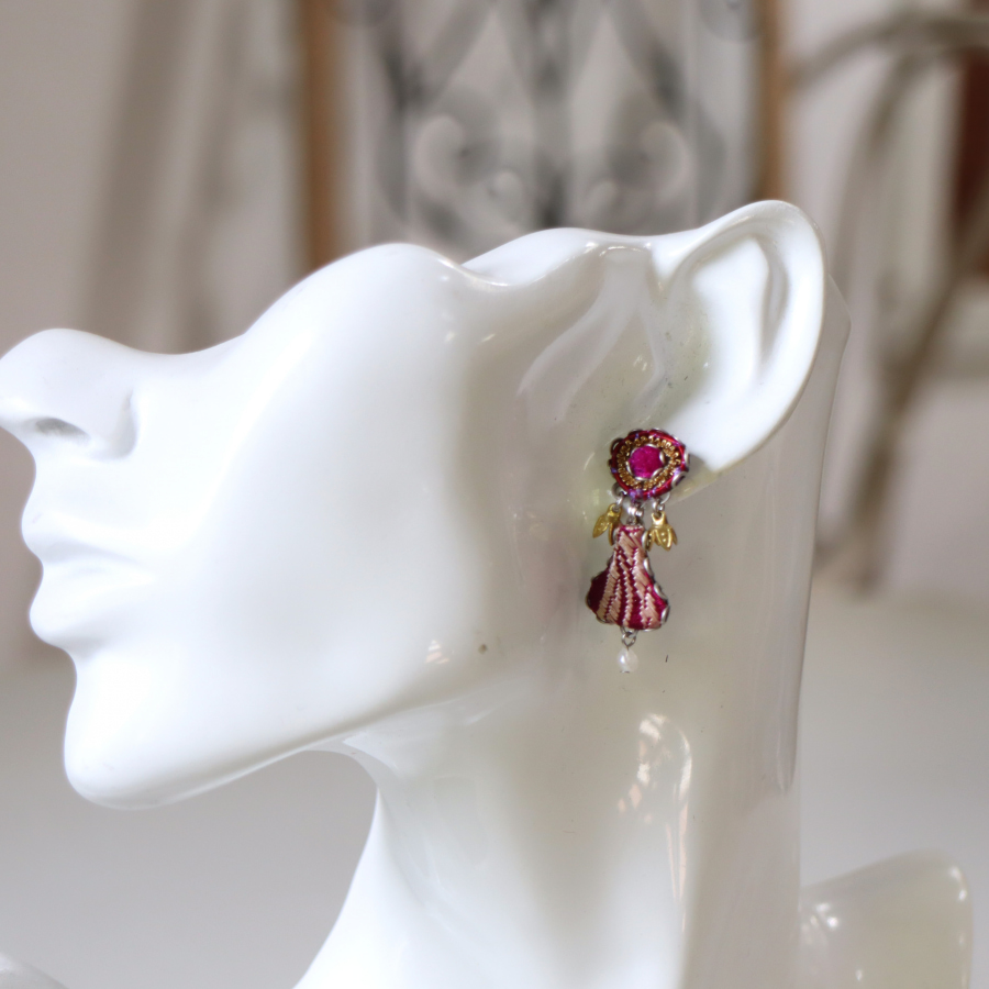 Ancient Royalty(古代の王族)という名の、深みあるフューシャピンクとゴールドの組み合わせが豪華で魅力のシリーズ。ベルベットの様な光沢がある風合いのファブリックにゴールドカラーの糸で細やかな刺繍が施されています。