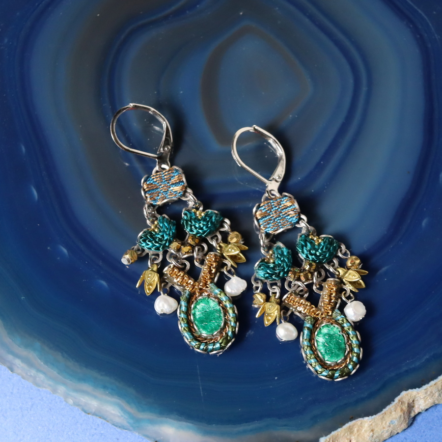 【アヤラ・バー Hip Collection 】 Hip Collectionは1970年代のヒッピー達のファッションを取り入れた、アヤラ・バーの人気のコレクションのひとつです。、布やリボン、ニット素材などを取り入れた、ユニークな組み合わせが特徴。カジュアルにも使いやすく、大ぶりで大胆なデザインがファンを惹きつけています。テクスチャの美しい小さなパーツのひとつひとつは、アヤラバーのアトリエで手作りされており、丁寧な仕上がりには目を見張るものがあります。