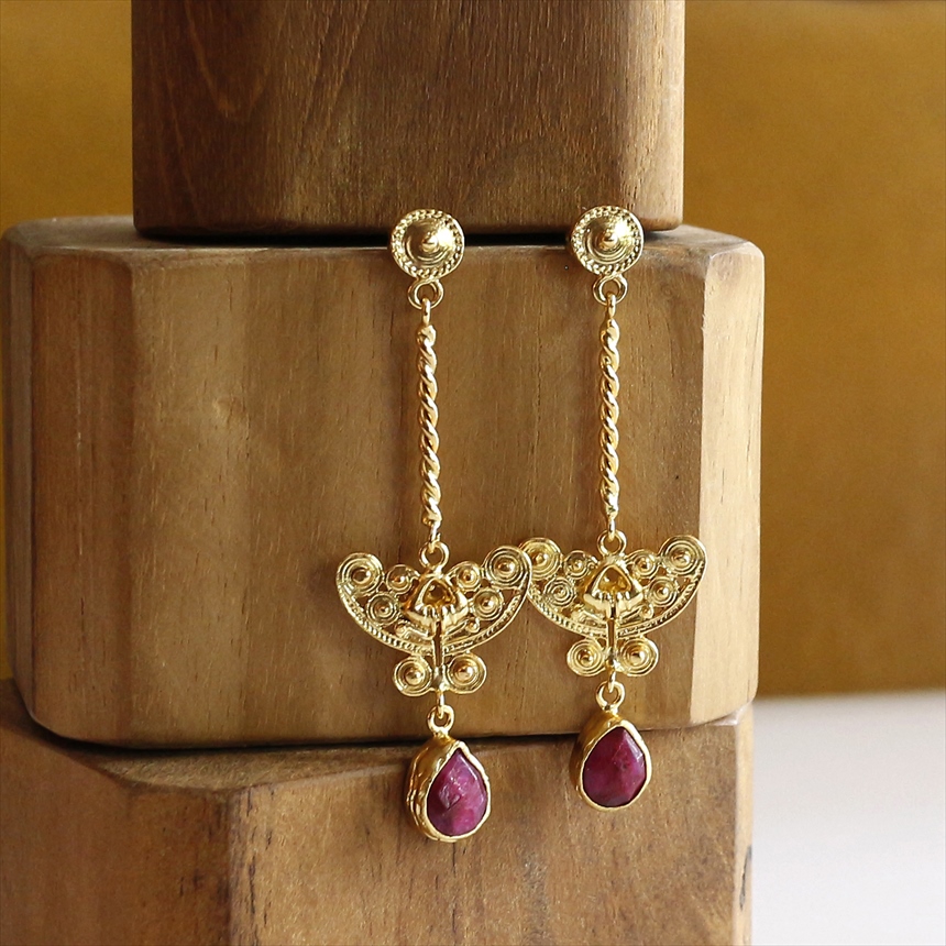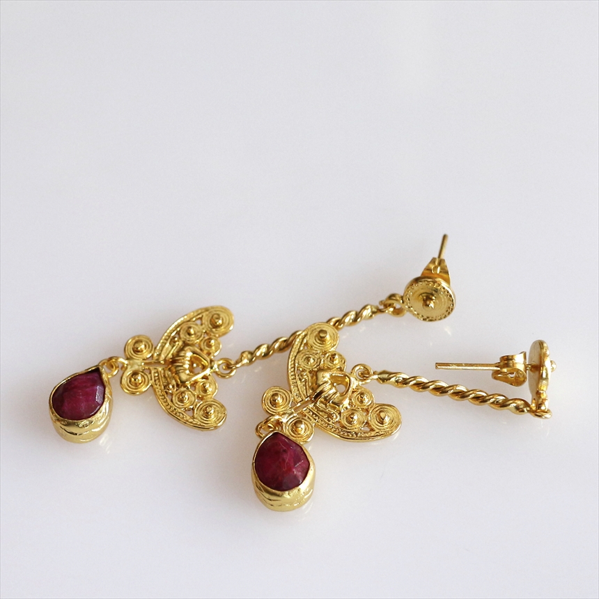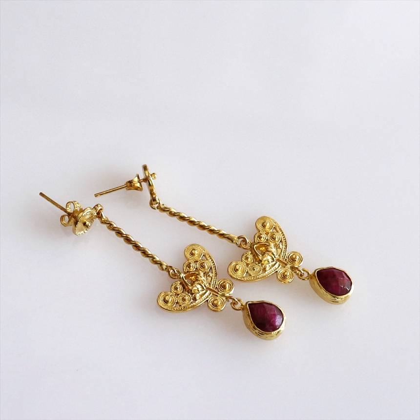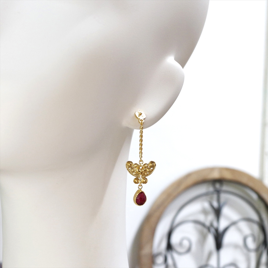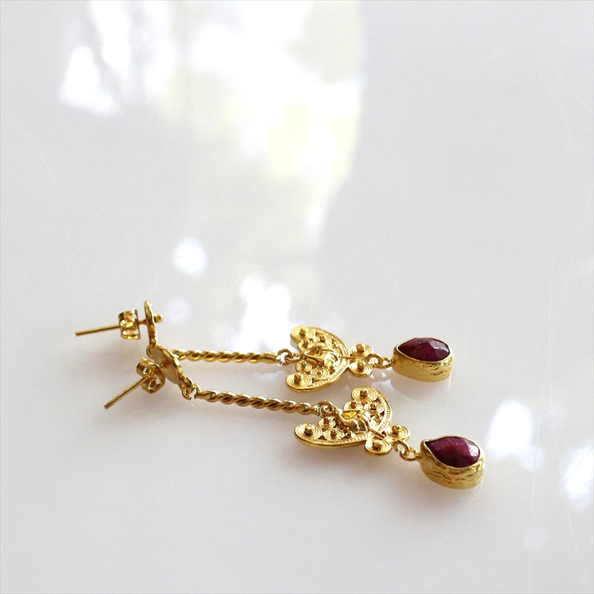 ルビー ゴールドピアス スタッドタイプ アルサメイア 天然石22KGP トルコジュエリー