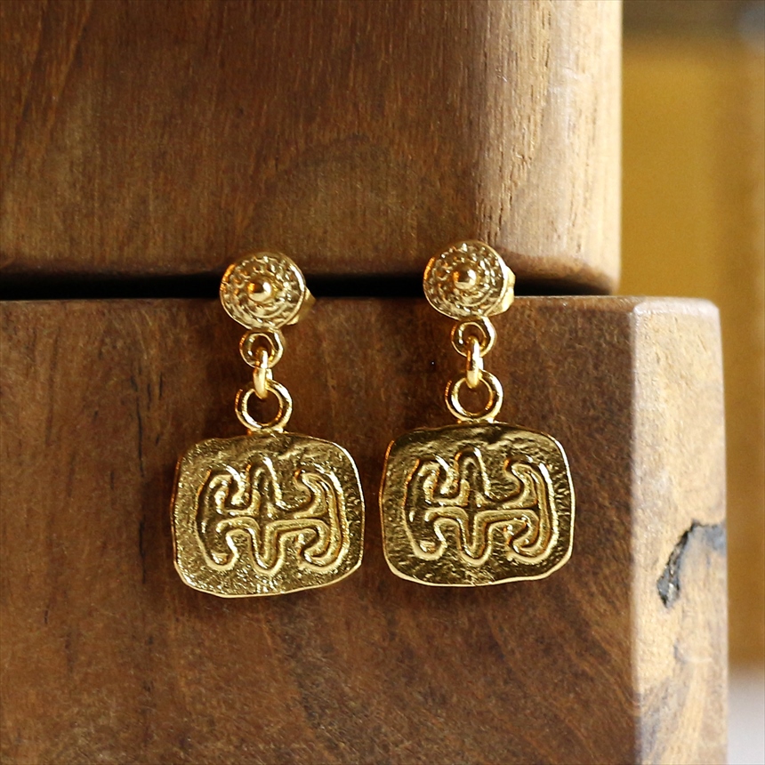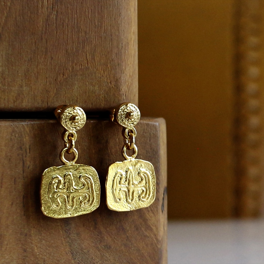 “アルサメイア Arsameia” は、古代王朝の遺跡から発掘される美麗な装飾品をイメージしたトルコ発のジュエリー。天然石とゴールドコートのブロンズを合わせ、手作り感あるユニークなデザインに仕上げられています。