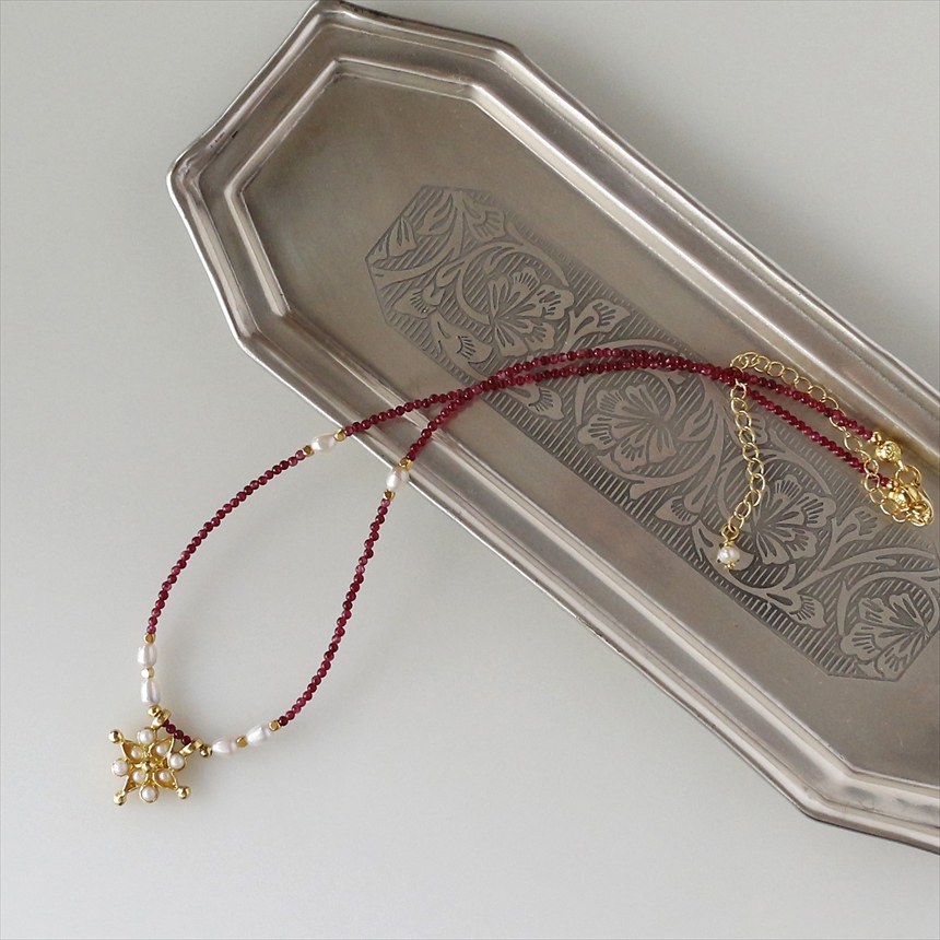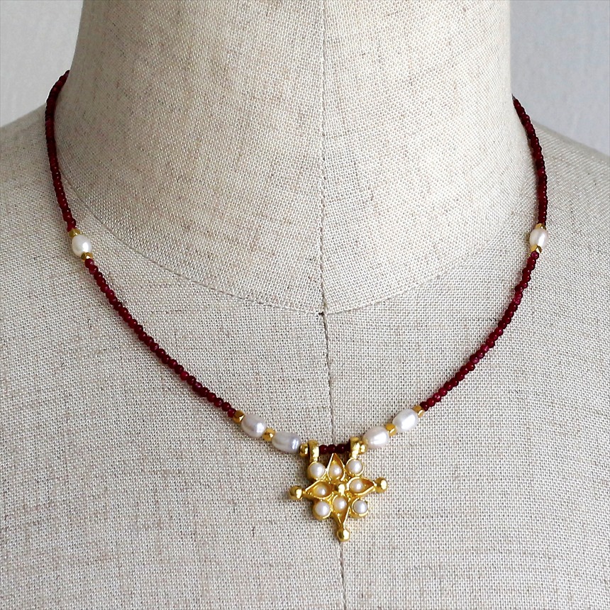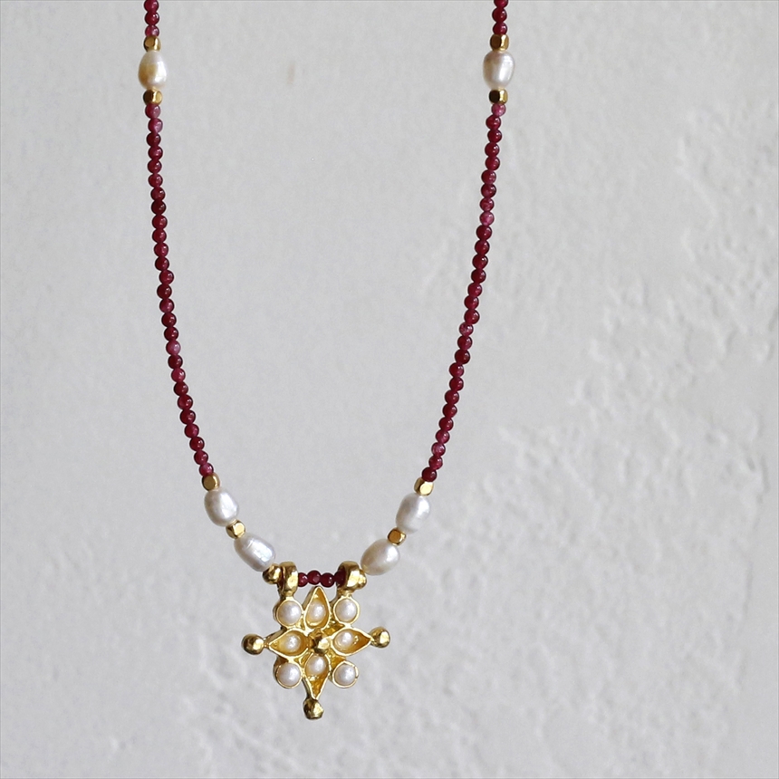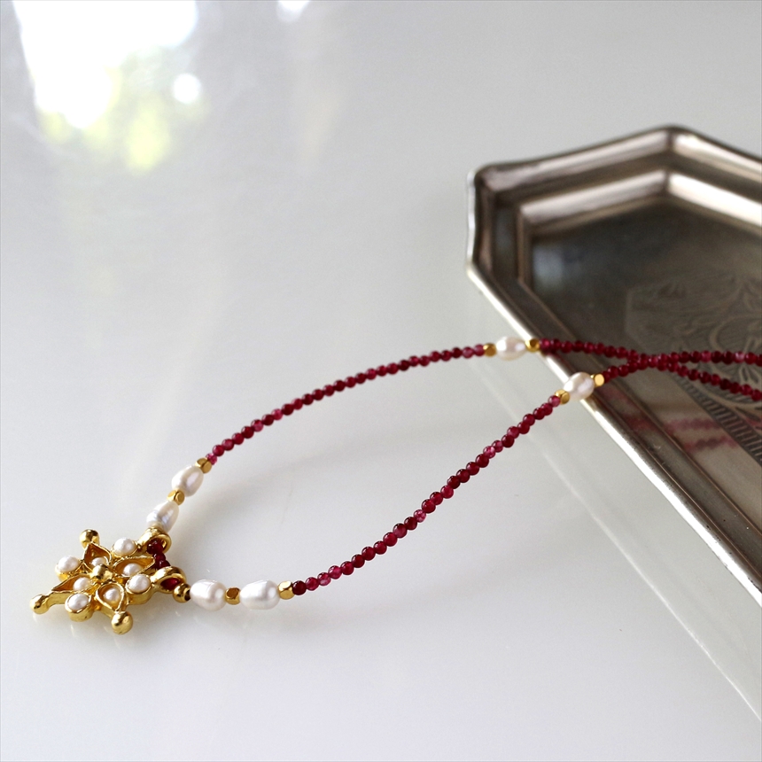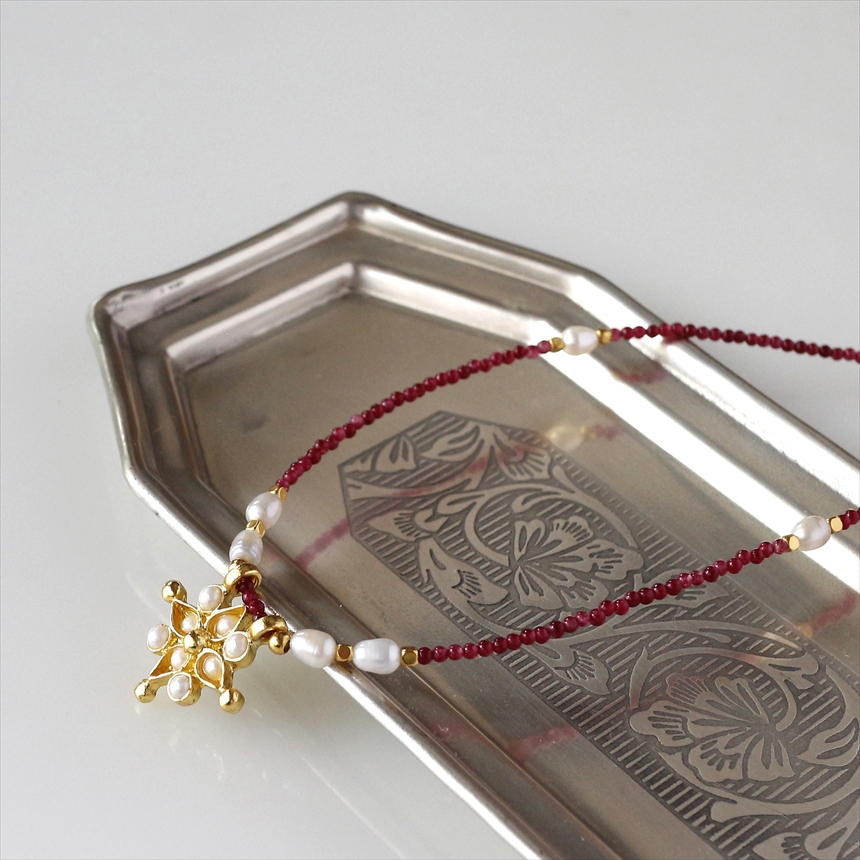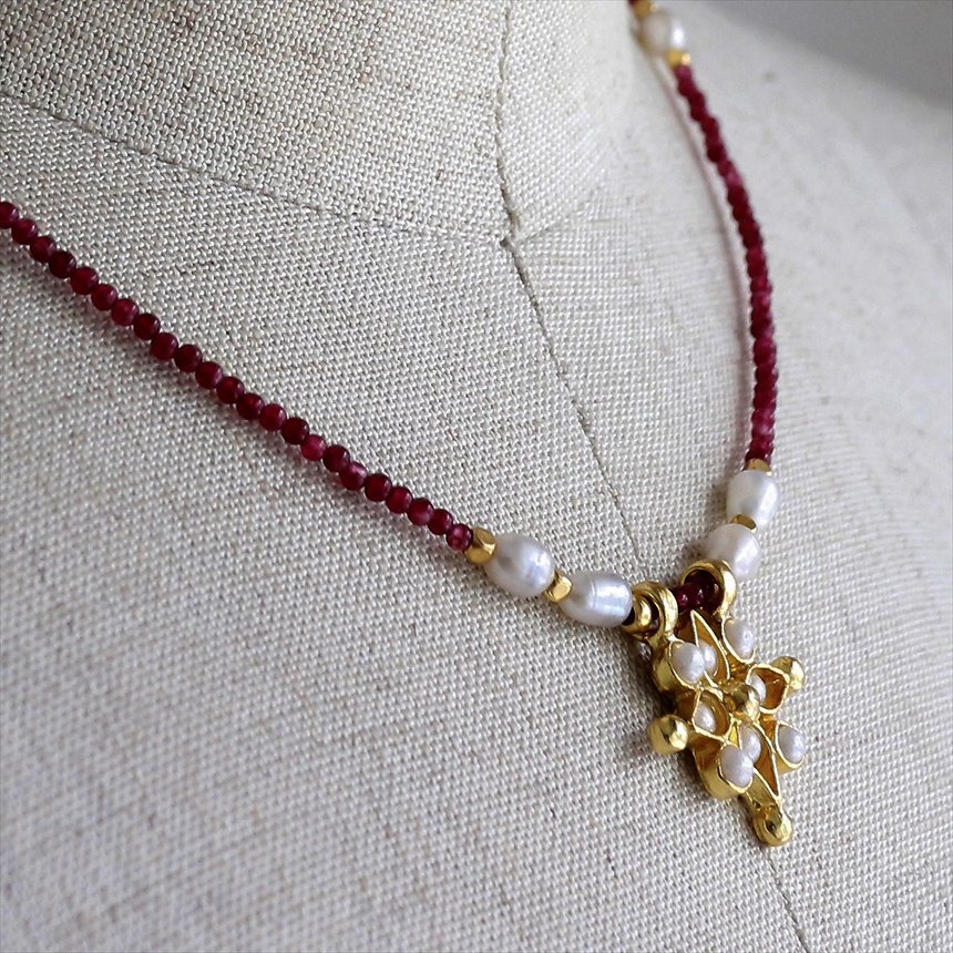 ビザンツクロス ルビー パール ネックレス アルサメイア 天然石22KGP トルコジュエリー