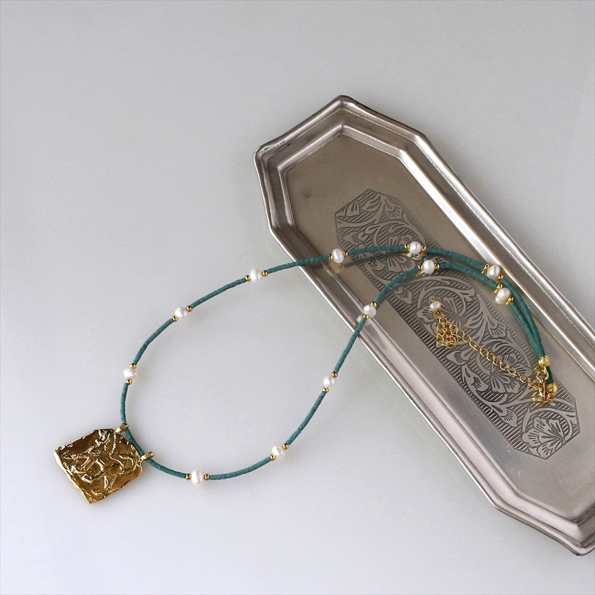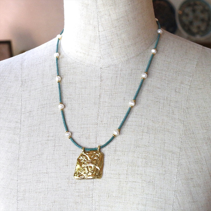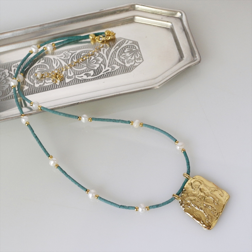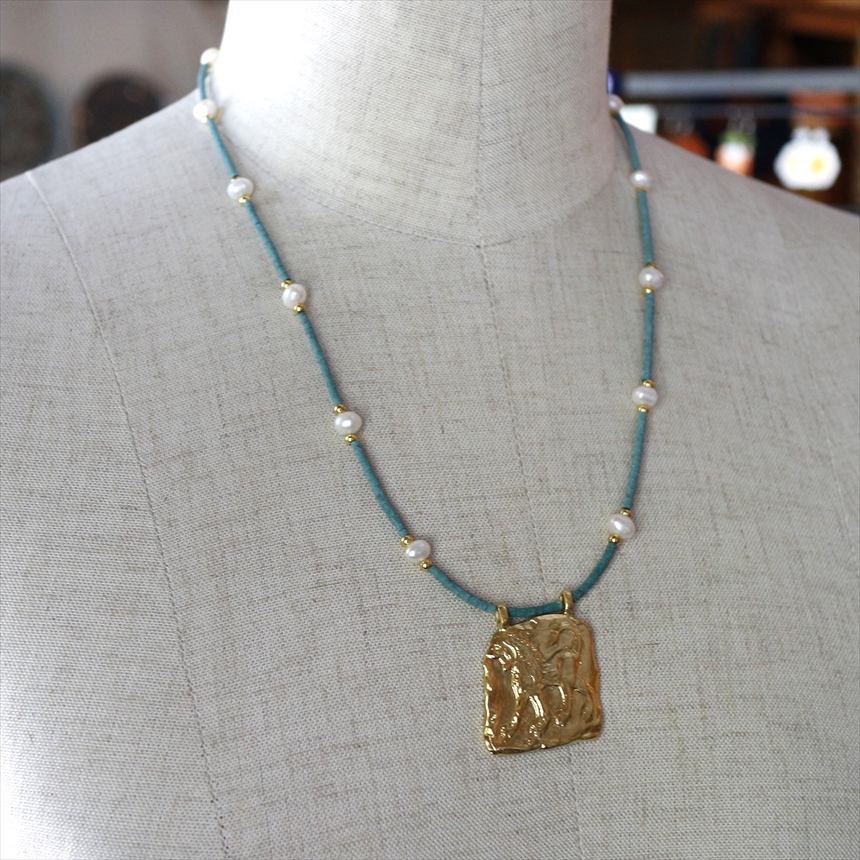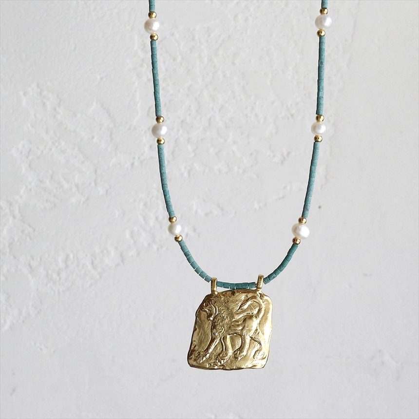 バビロニア イシュタール門のレリーフのネックレス マラカイト パール アルサメイア