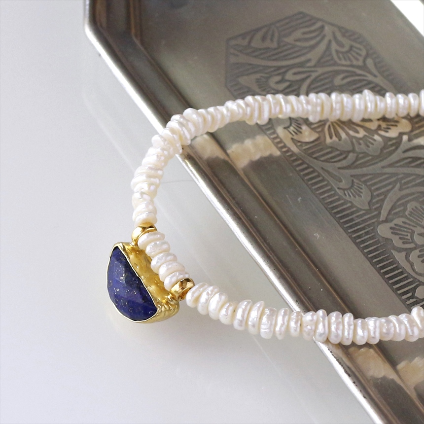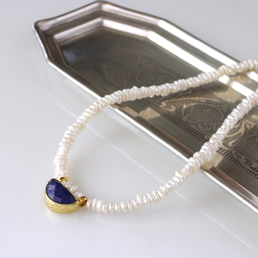 ラピスラズリハーフムーン パール ネックレス アルサメイア 天然石22KGP トルコジュエリー