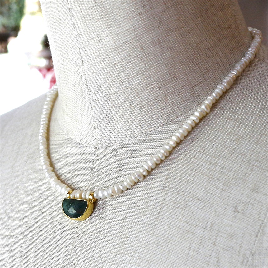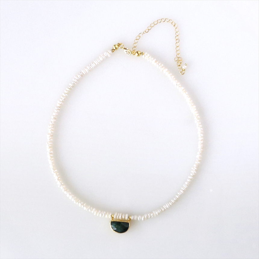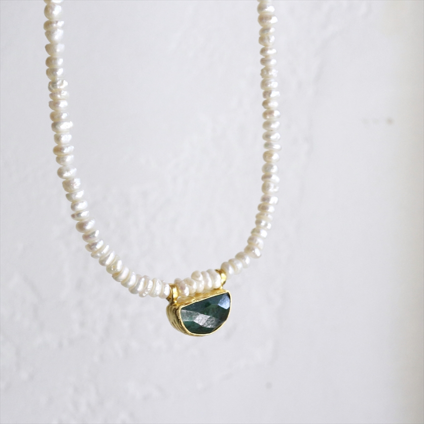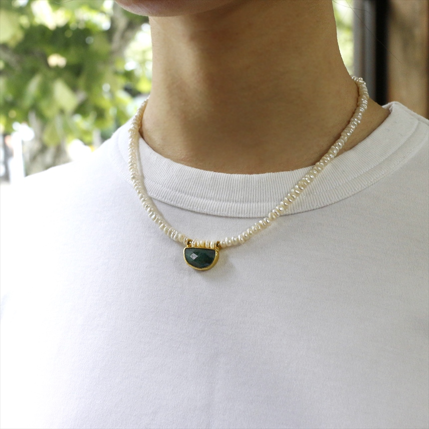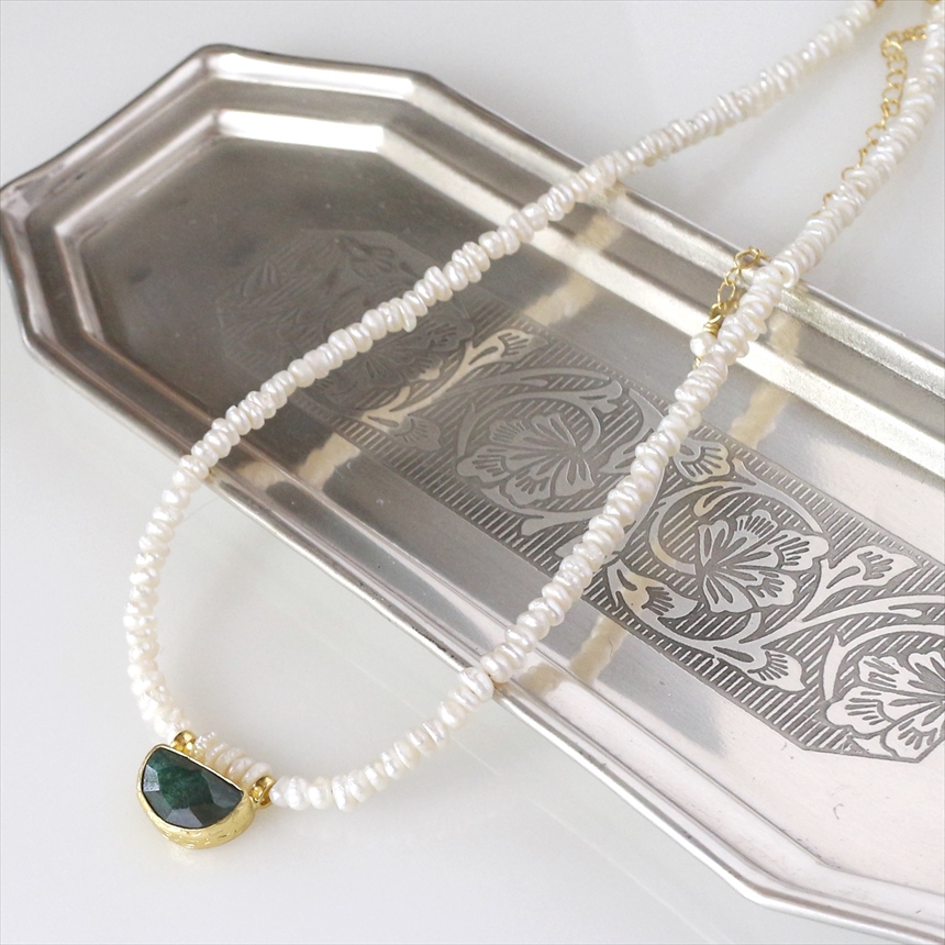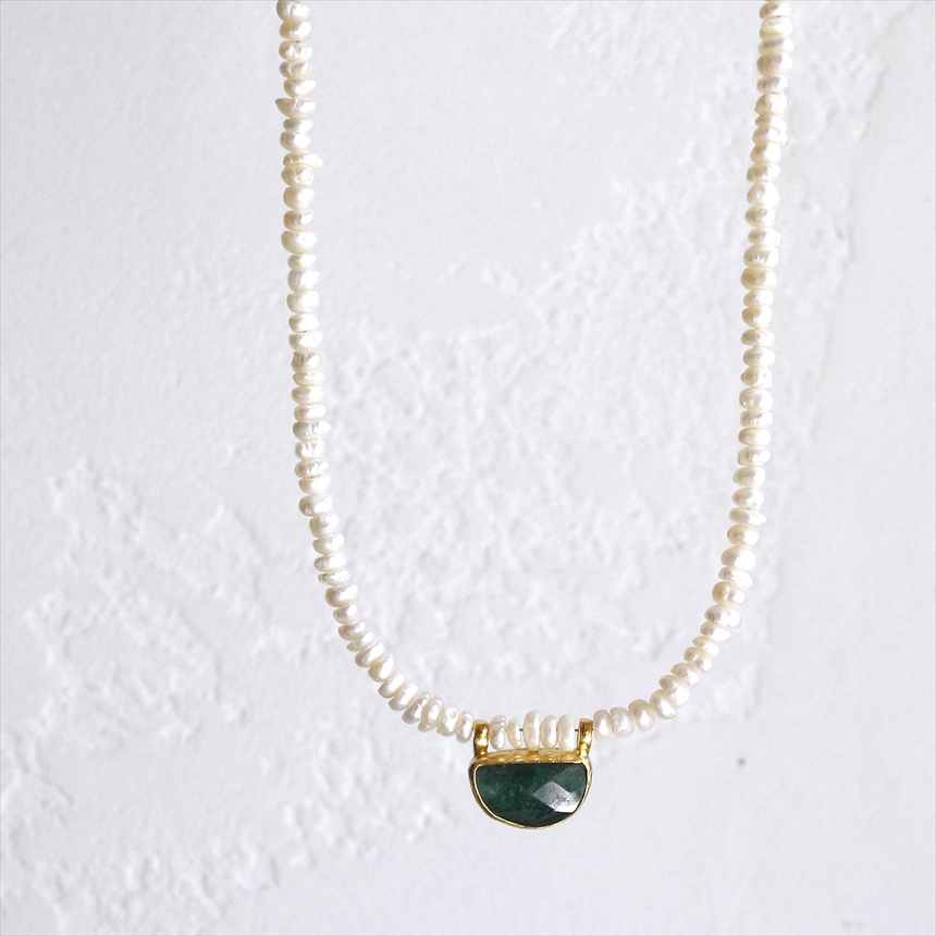 エメラルドハーフムーン パール ネックレス アルサメイア 天然石22KGP トルコジュエリー
