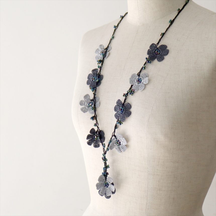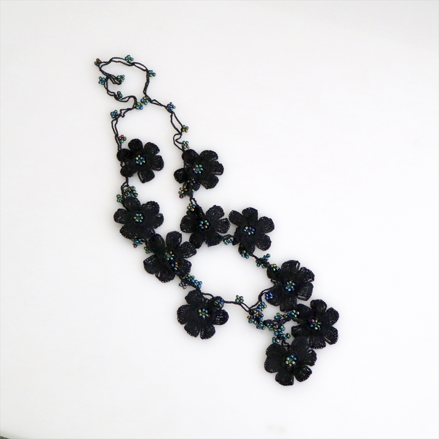 トルコのレース「オヤ」ネックレスかぎ針編みのトゥオヤ パパテヤ ブラック・グレー