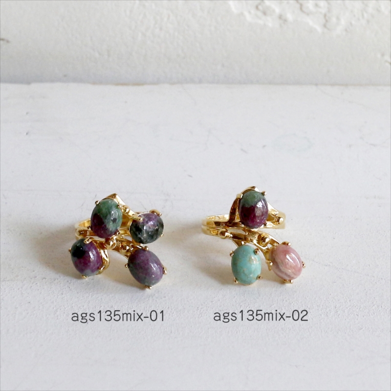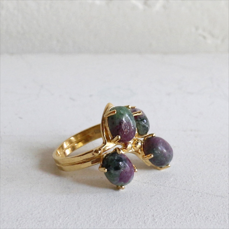 ルビーインゾイサイト ラフカットリング 18KGF 天然石 四つのストーン カラーストーン