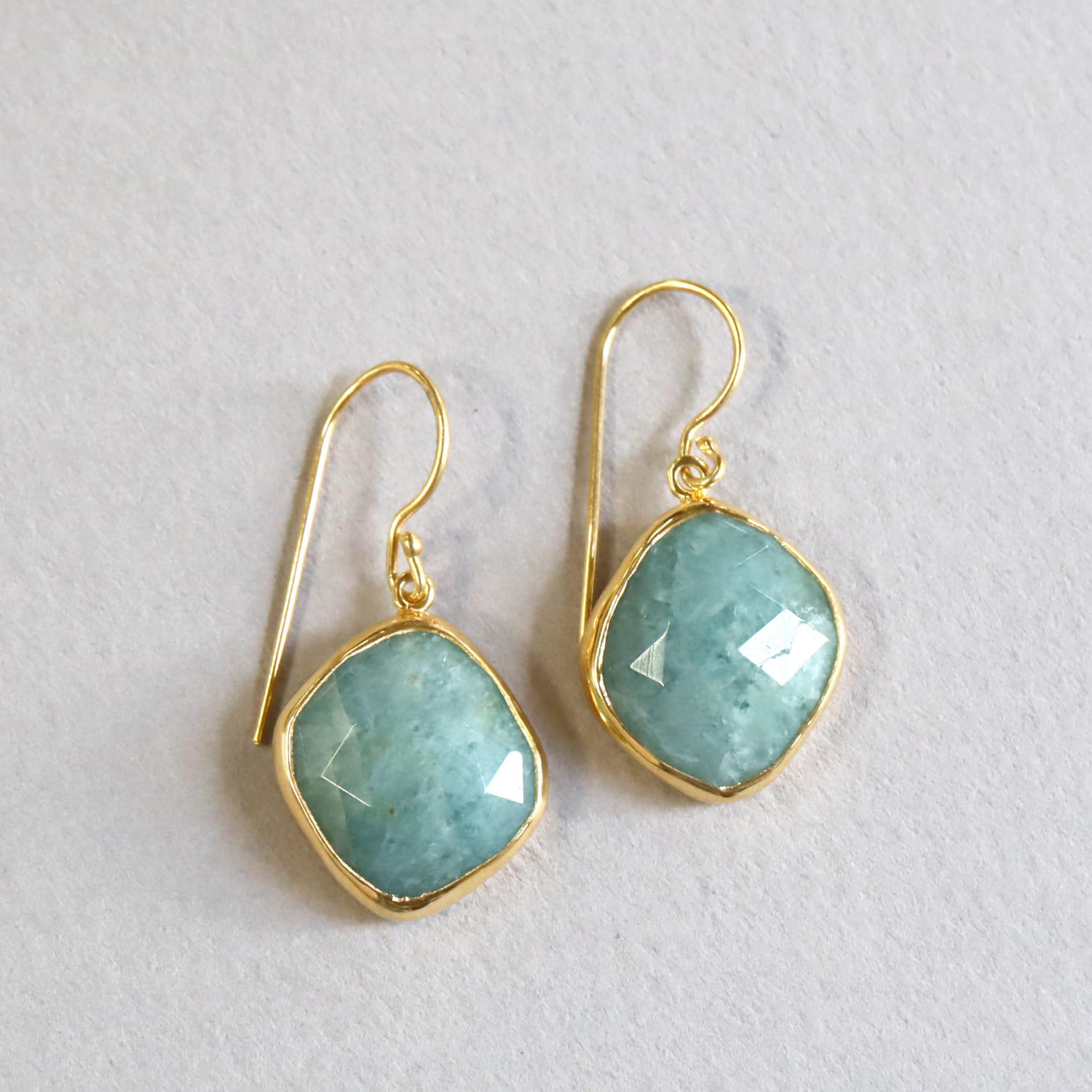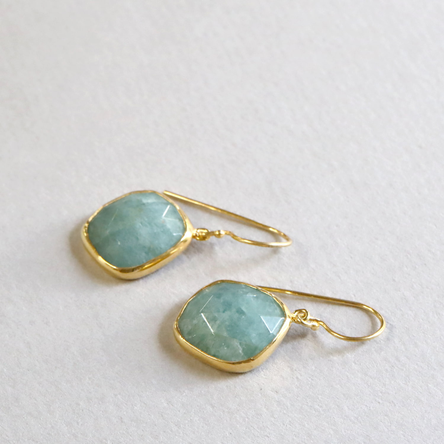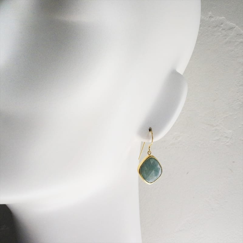 アクアマリン スクエア シルバーピアス ミルキーアクアマリン トルコジュエリー 色石 シルバー925(18kgf) 天然石 ラフカット