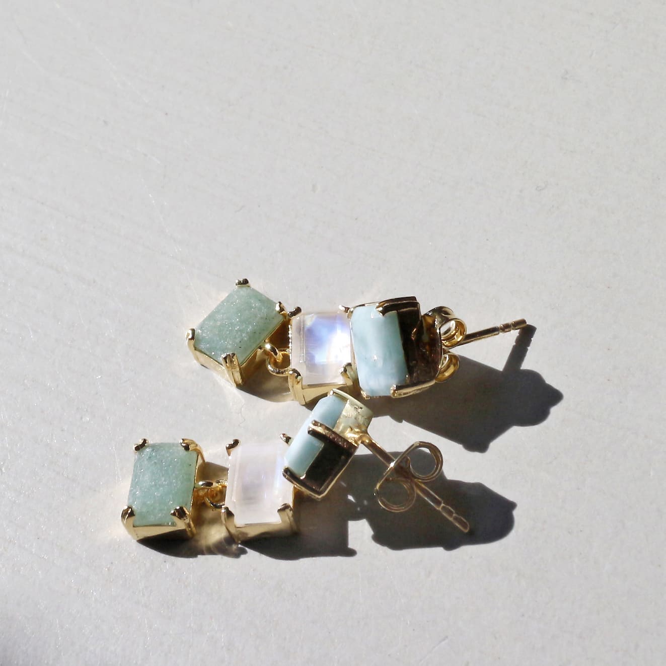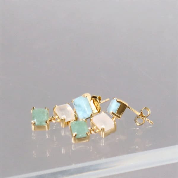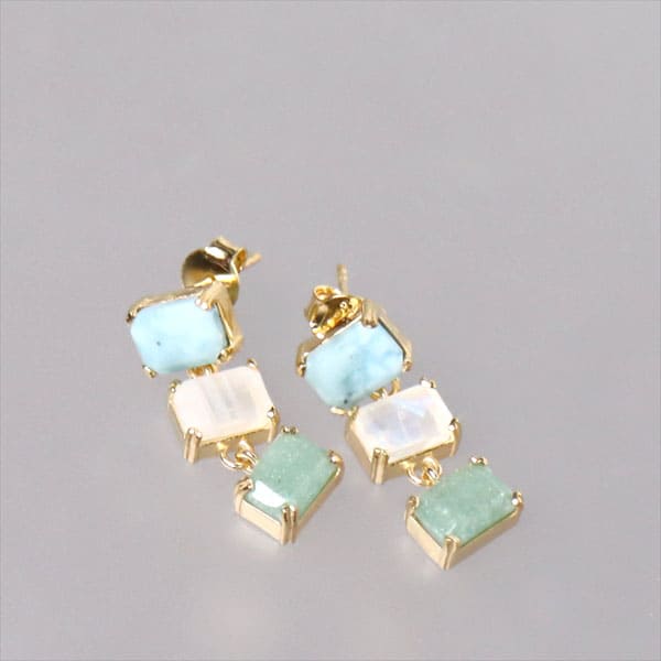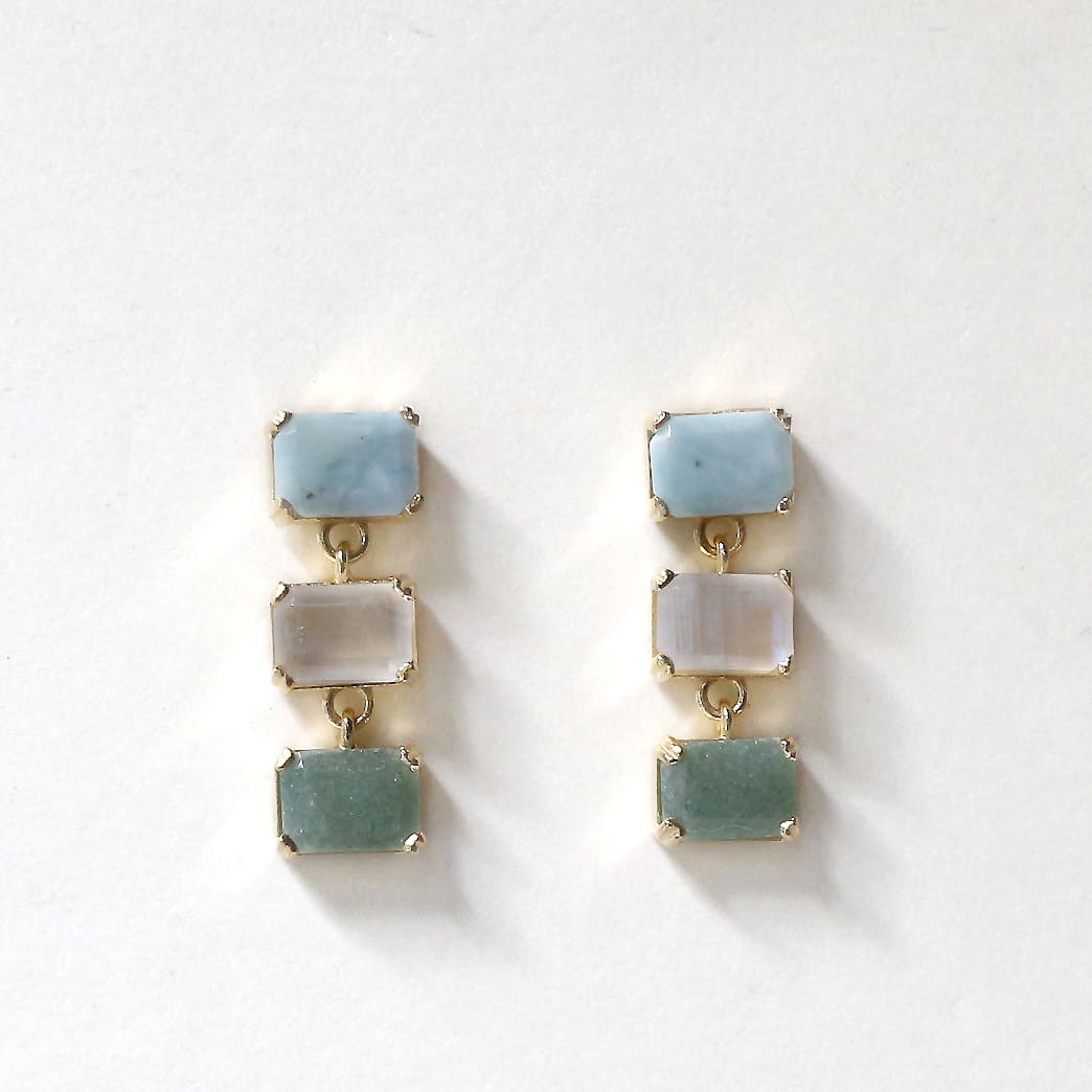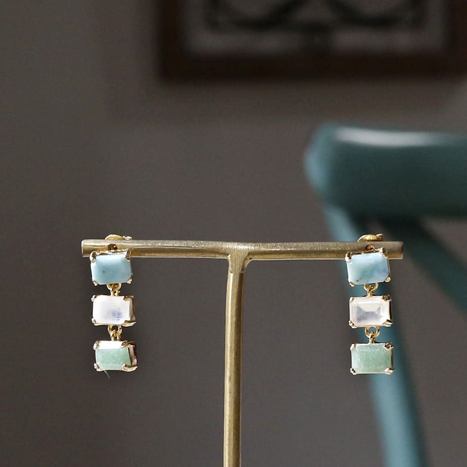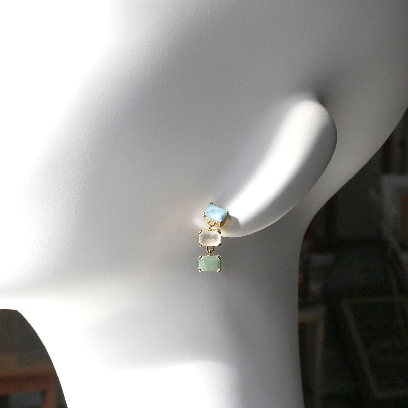 ラリマー×レインボームーンストーン×グリーンアベンチュリン 三つのストーンのピアス 18KGF 天然石 シルバーピアス