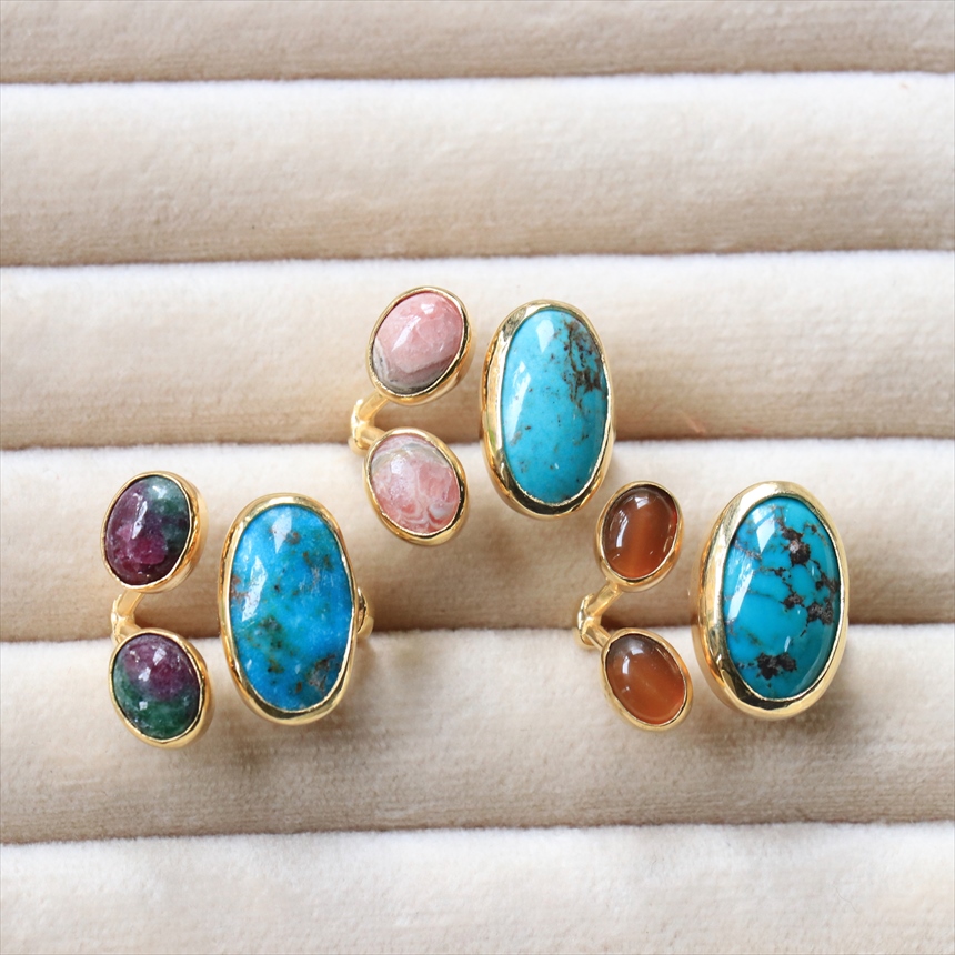 Key:Turkish Jewelry, Color stone,イスタンブールジュエリー, トルコジュエリー, シルバージュエリー,ゴールドコーティング,上質, 天然石,リング,ひと粒,ガラタバザール,ハンドメイド,カラーストーン,きれいめ,大人女子,一点物,色石,輸入雑貨,トルコ,ニュアンスカラー,プレゼント,ターコイズ,3粒