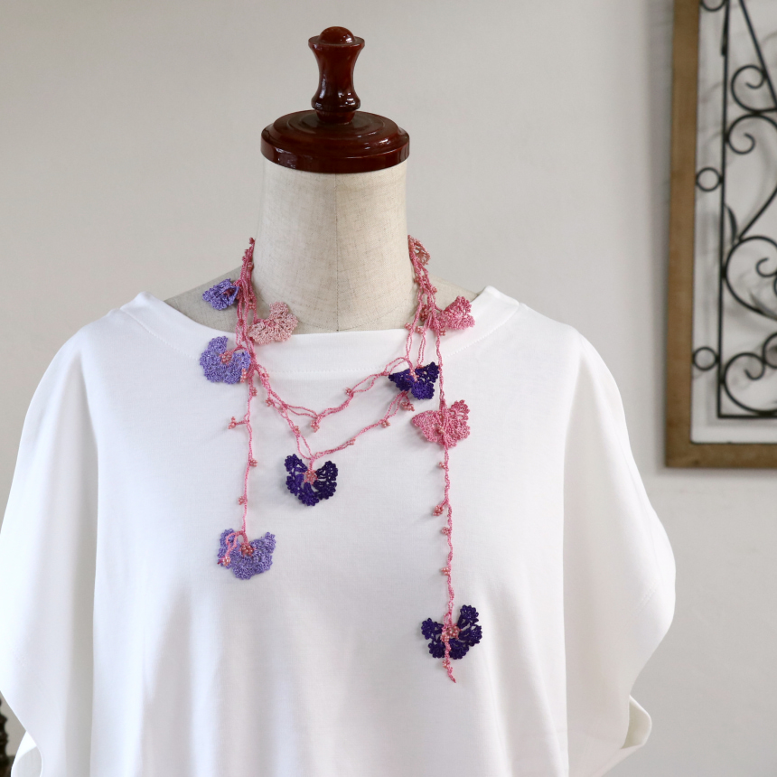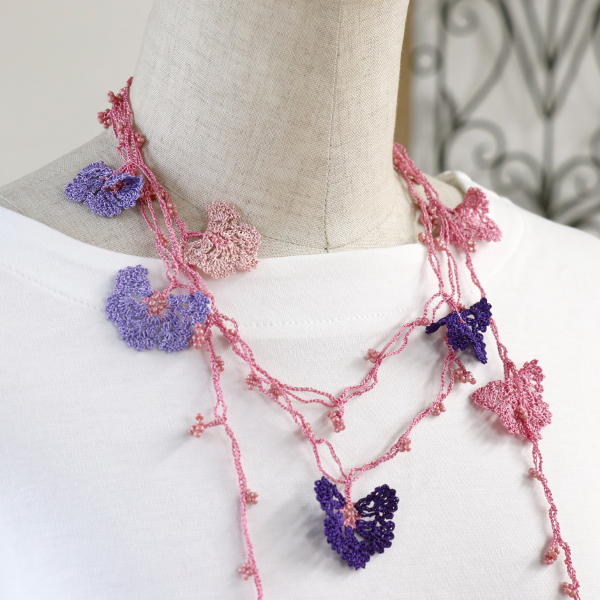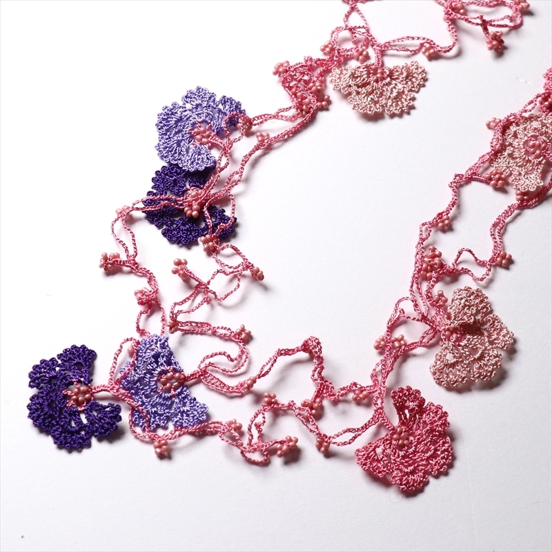 トルコのレース編み「オヤ」ラリエット トゥオヤ ピンク&パープル
