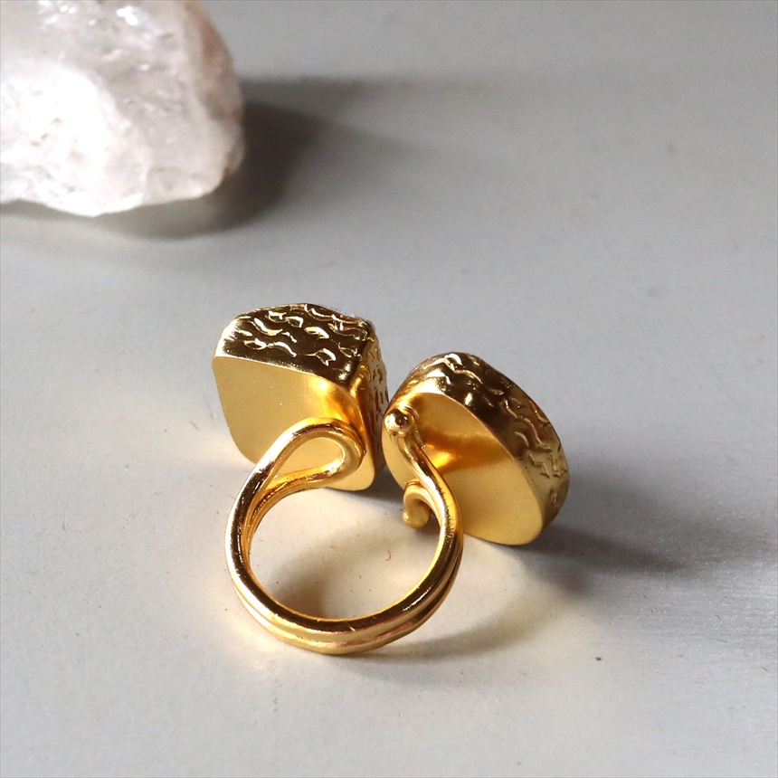 アルサメイア・リング 2DROP ドゥルージー ルビー スクエア ドロップ バイカラー 22Kゴールドプレーテッド トルコジュエリー