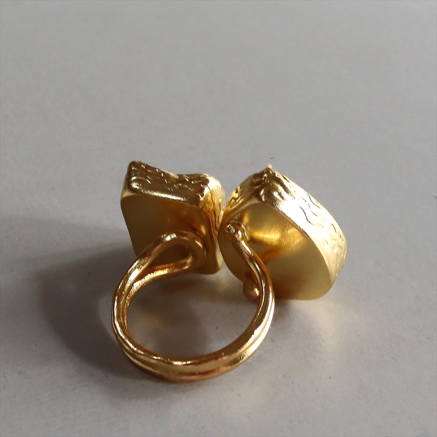 アルサメイア・リング 2DROP ドゥルージー エメラルド スクエア ドロップ バイカラー 22Kゴールドプレーテッド トルコジュエリー