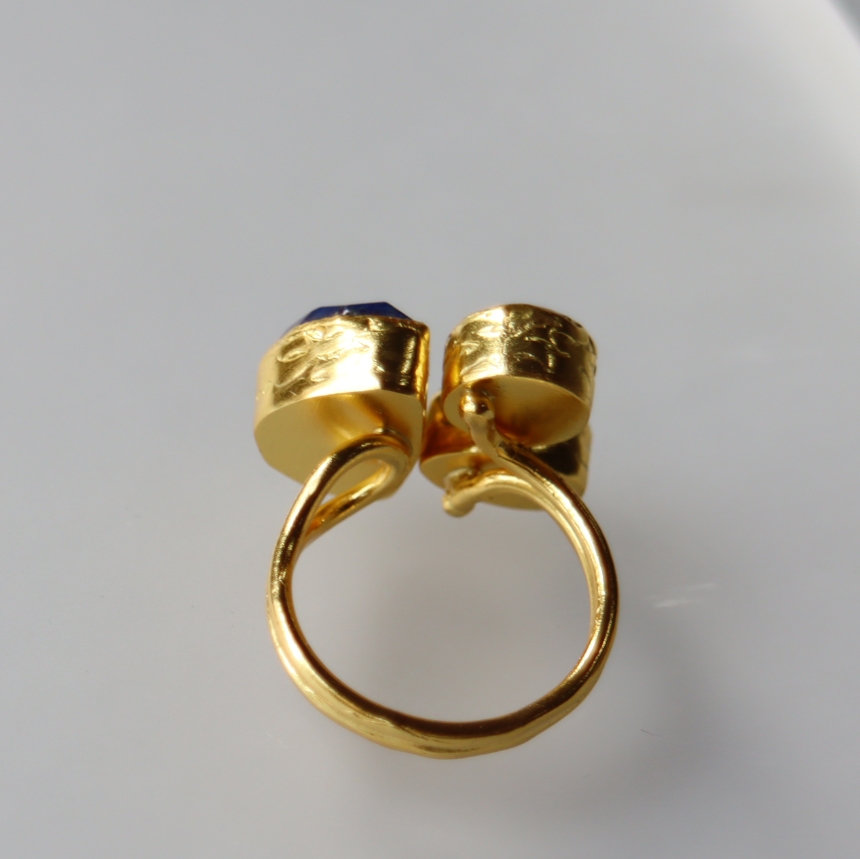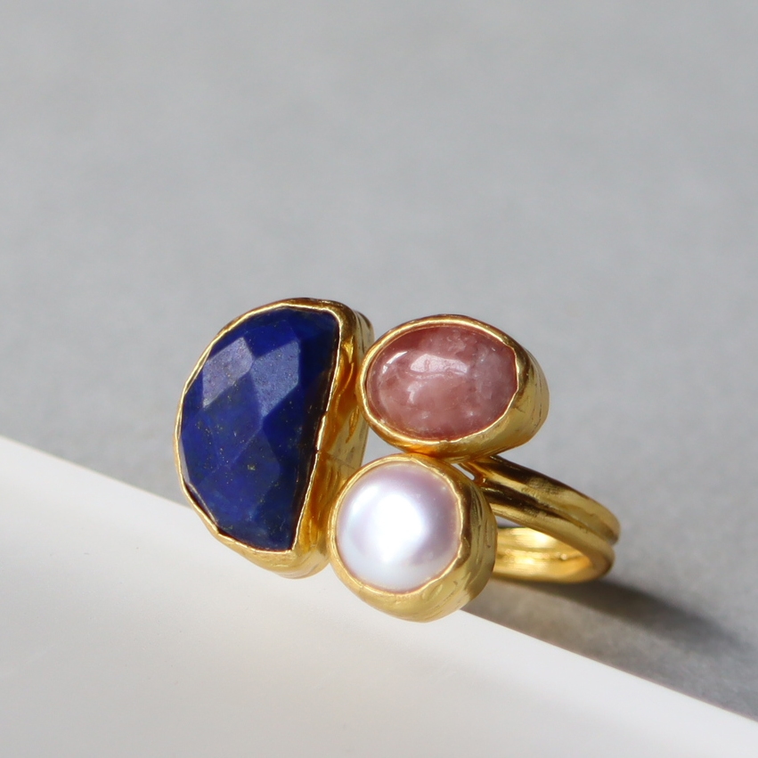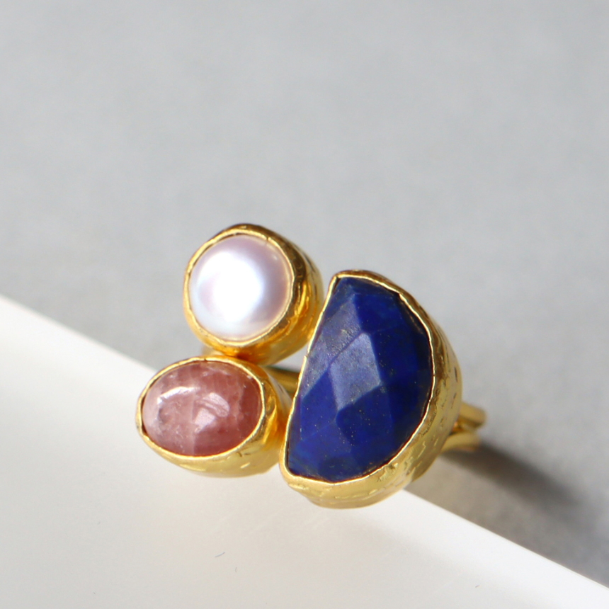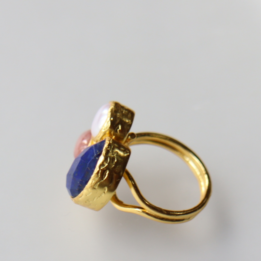アルサメイア 三つの石のリング ラピスラズリ×ロードクロサイト×パール 天然石22KGP トルコジュエリー