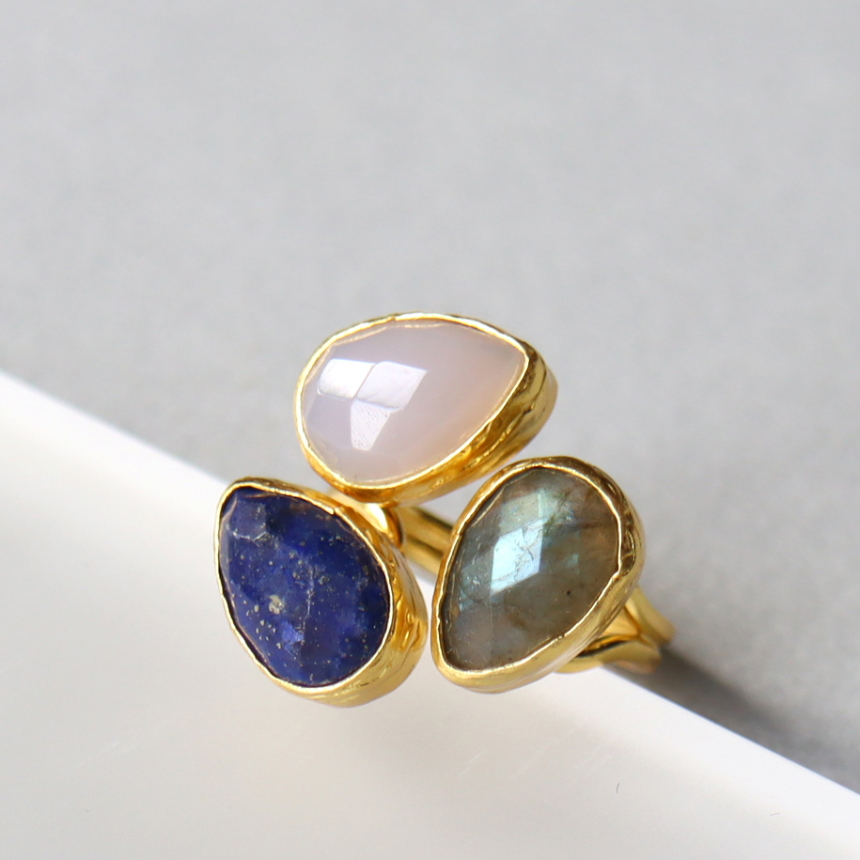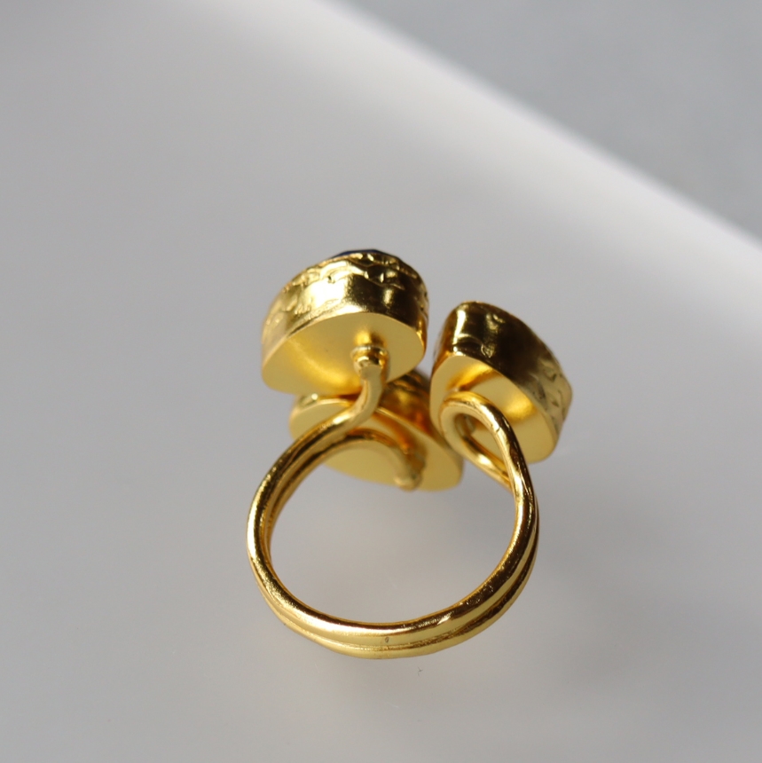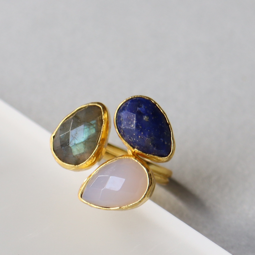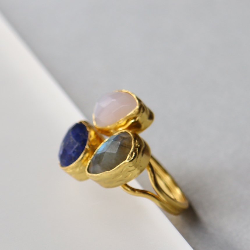 アルサメイア 三つの石のリング ラピスラズリ×ラブラドライト×ホワイトカルセドニー 天然石22KGP トルコジュエリー