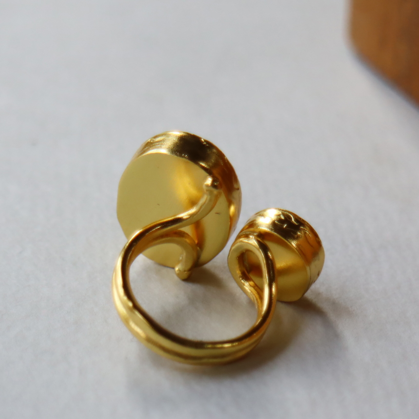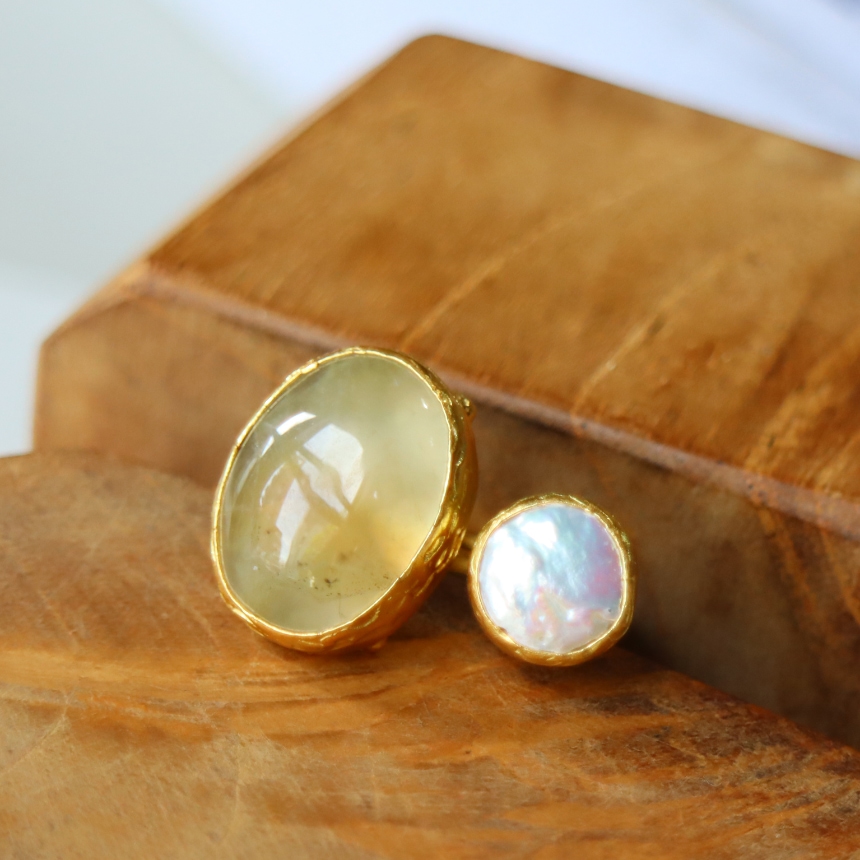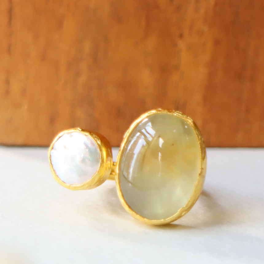 アルサメイア パール&プレナイトダブルリング カボション アルサメイア 天然石22KGP トルコジュエリー