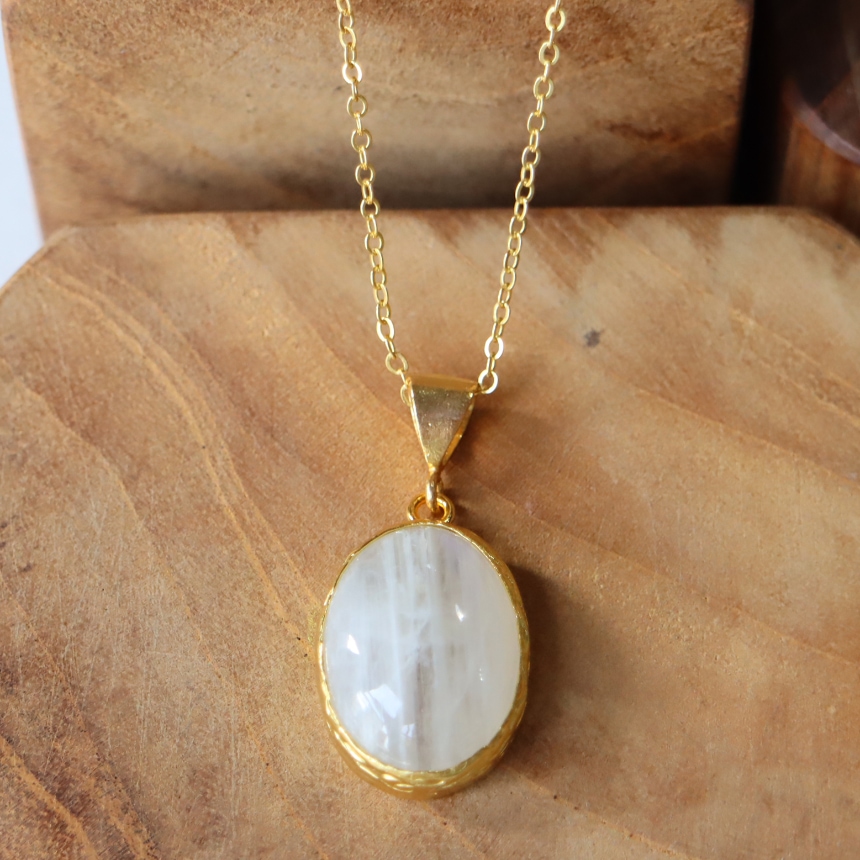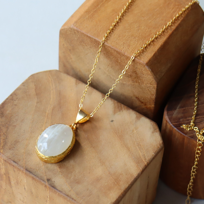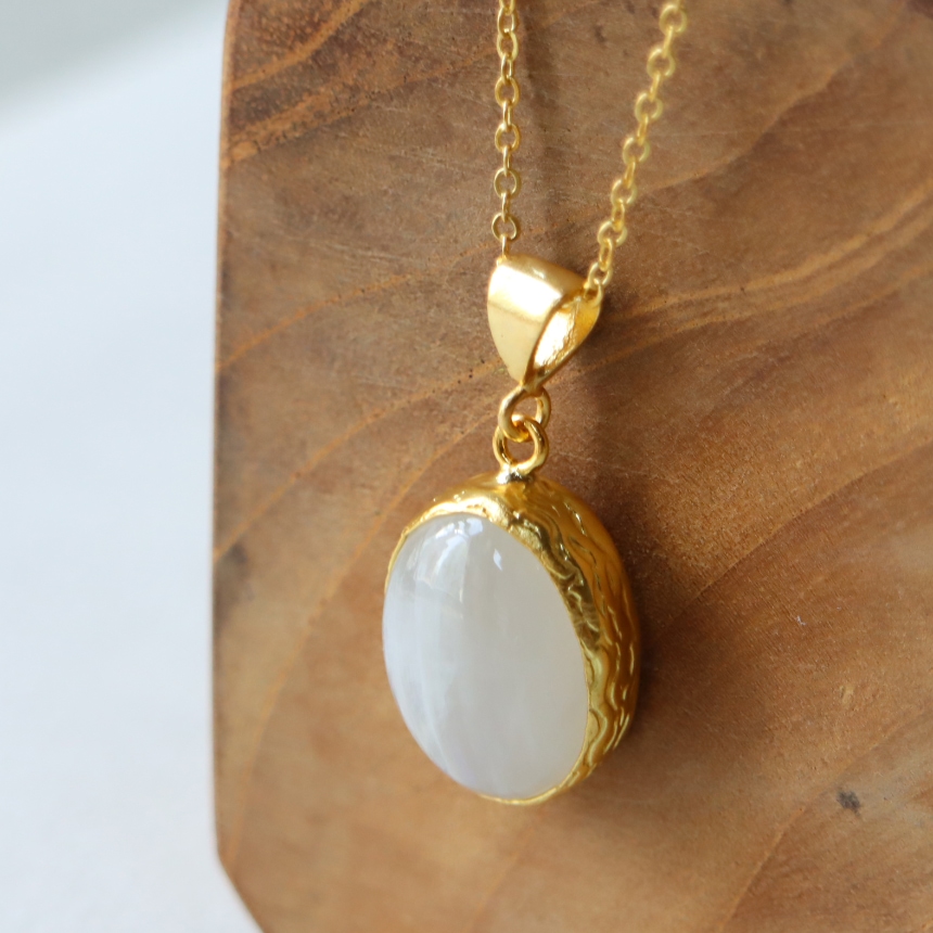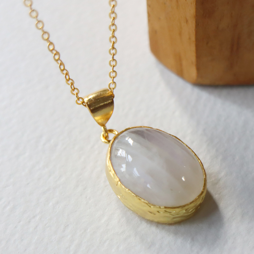 ムーンストーンオーバルペンダント 22KGP カボション アルサメイア 天然石一粒ネックレス トルコジュエリー