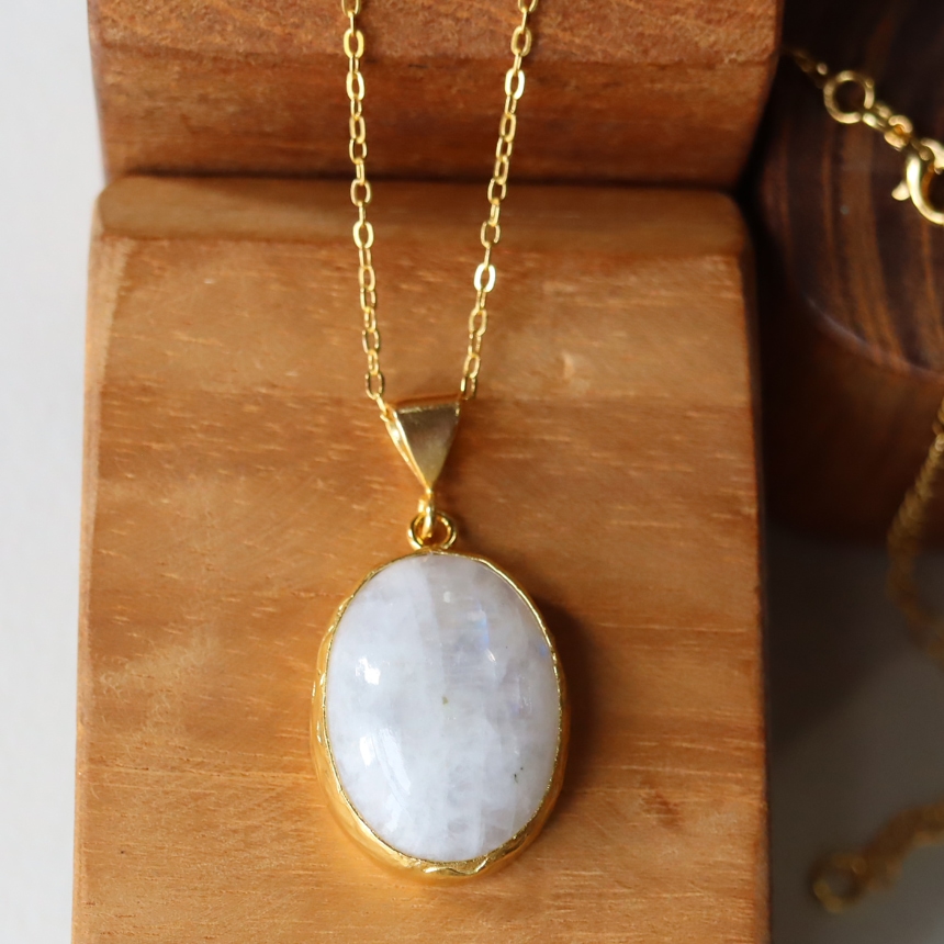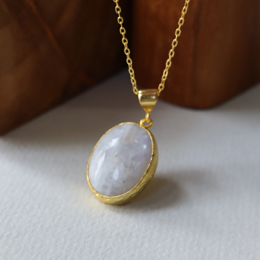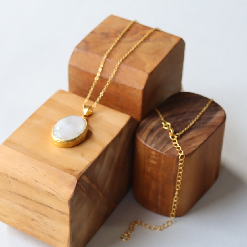 ムーンストーンオーバルペンダント 22KGP カボション アルサメイア 天然石一粒ネックレス トルコジュエリー