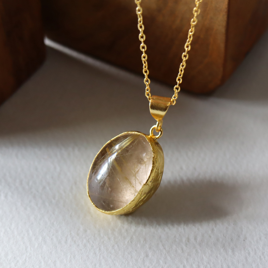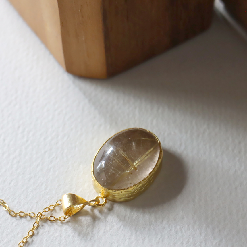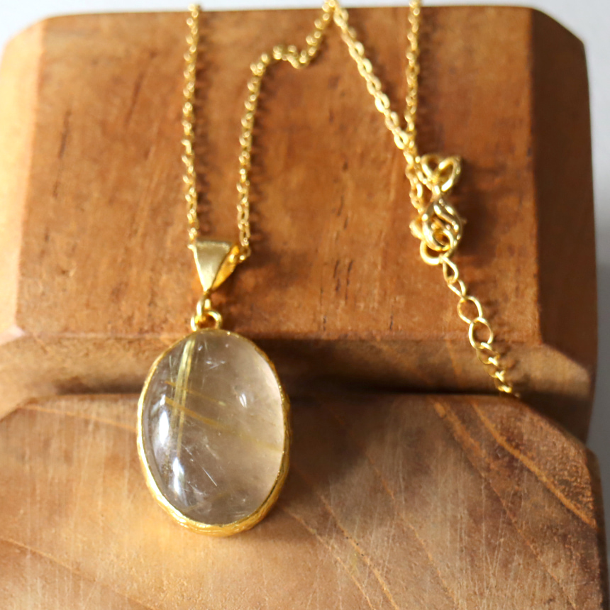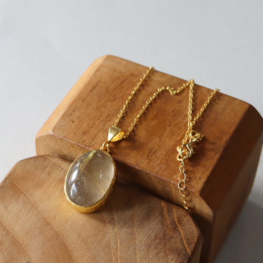 ルチルクォーツ オーバルペンダント 22KGP カボション アルサメイア 天然石一粒ネックレス トルコジュエリー