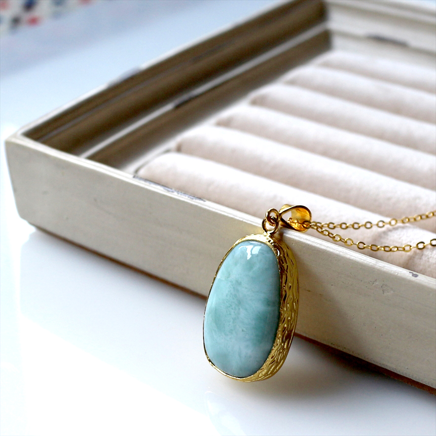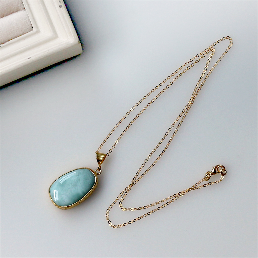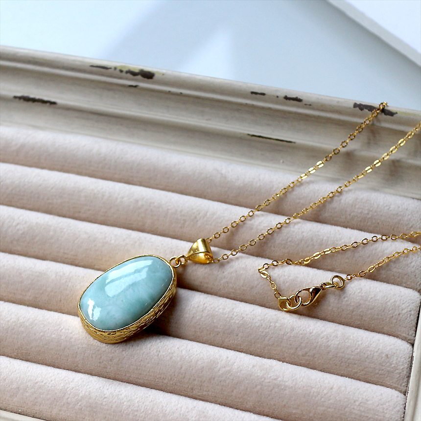 ラリマー ペンダント 22KGP カボション オーバル アルサメイア 天然石一粒ネックレス トルコジュエリー