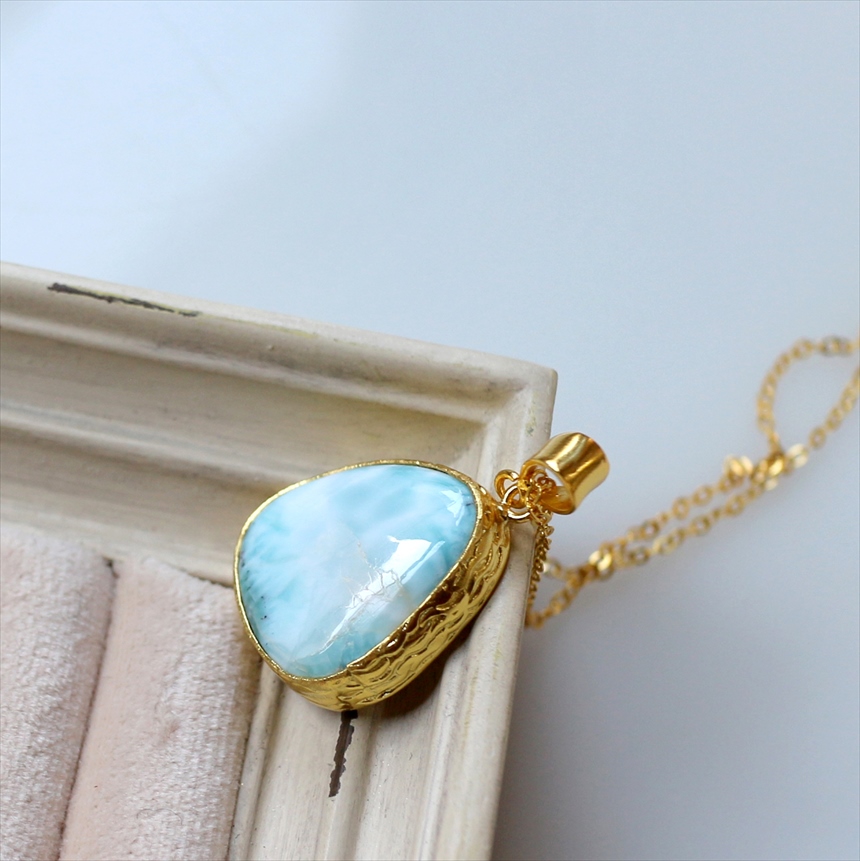 ラリマー ペンダント 22KGP カボション ラフカット アルサメイア 天然石一粒ネックレス トルコジュエリー