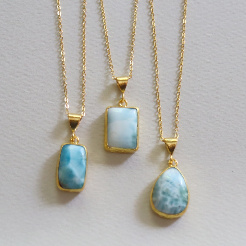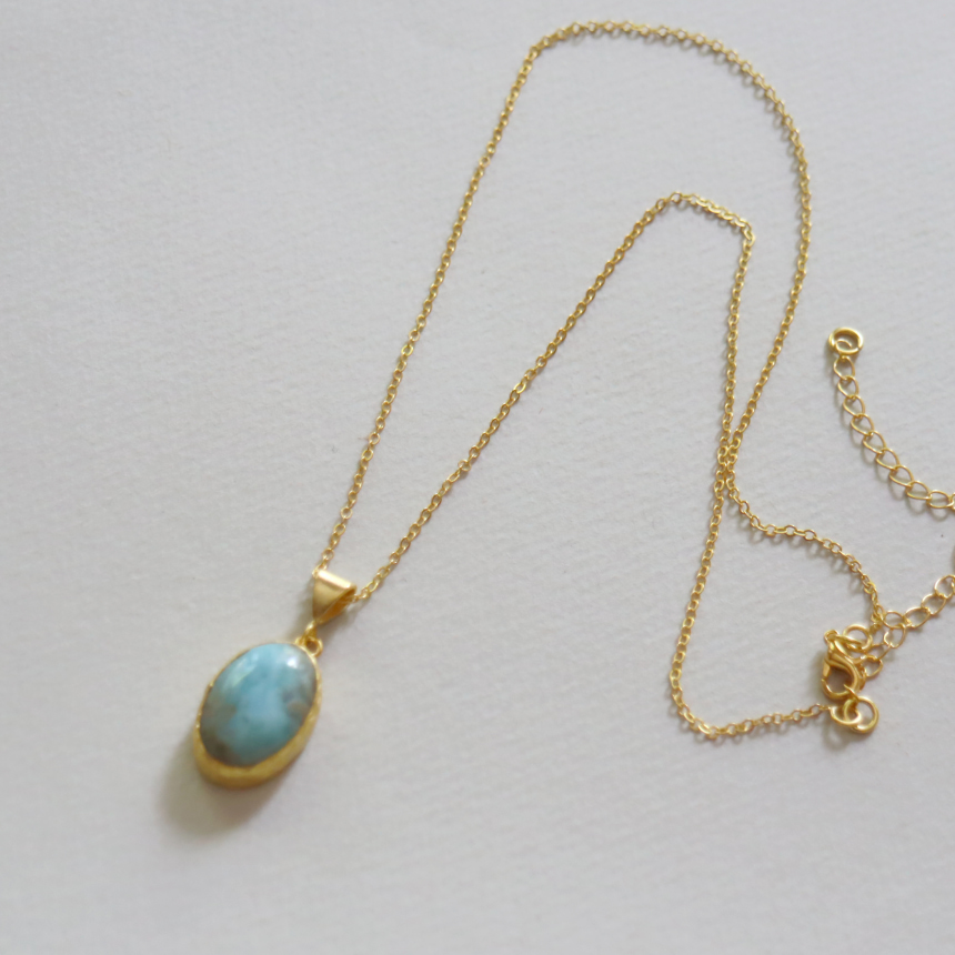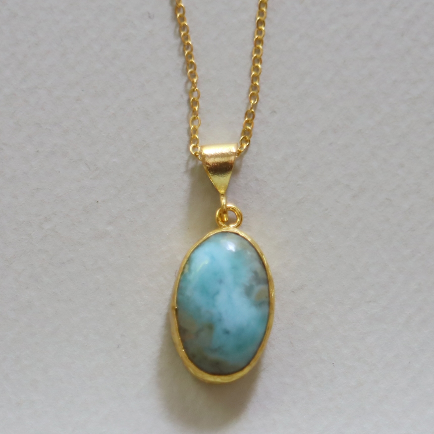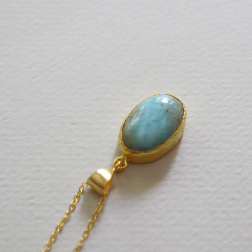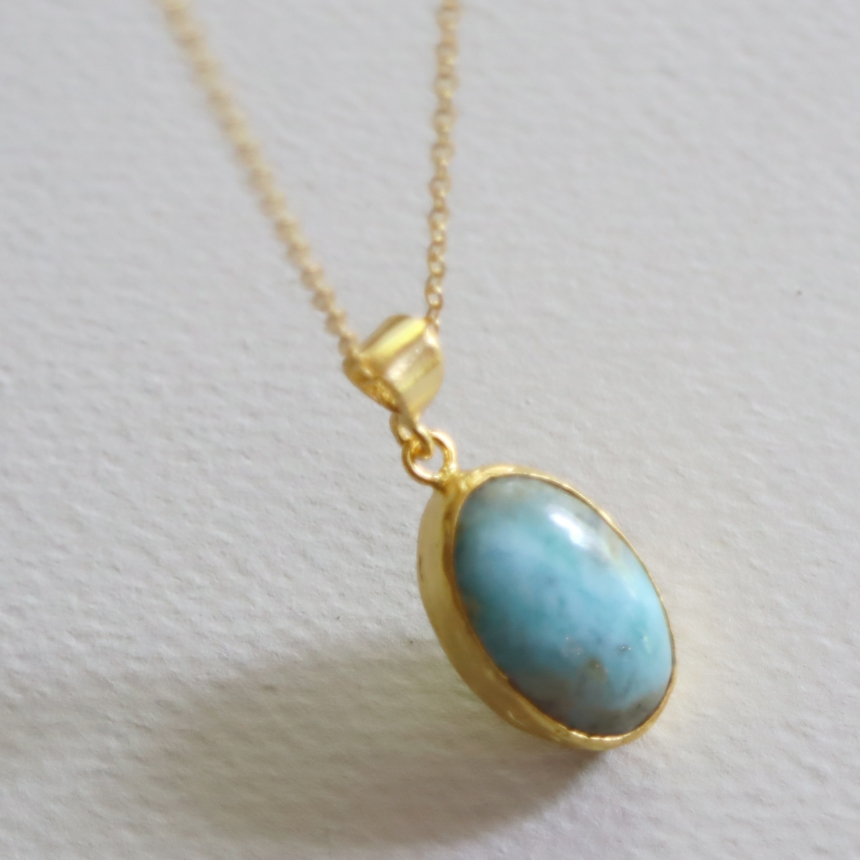 ラリマー オーバルペンダント 22KGP カボション アルサメイア 天然石一粒ネックレス トルコジュエリー