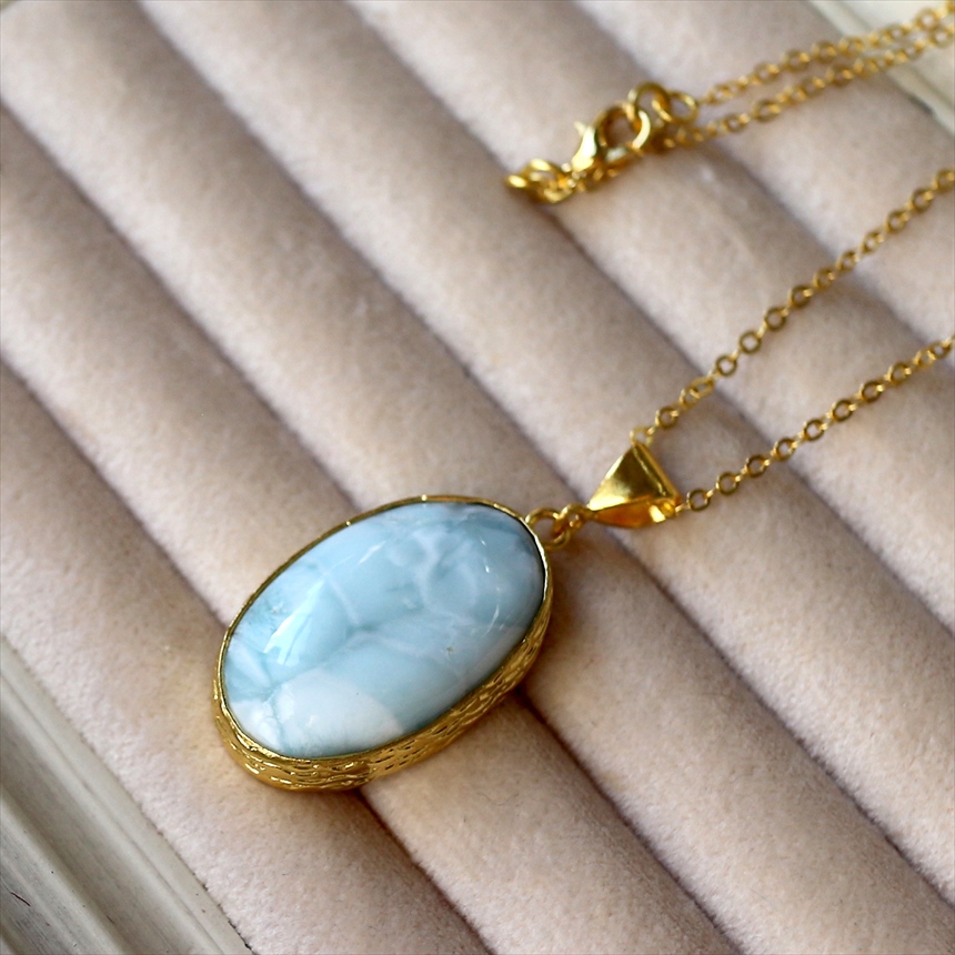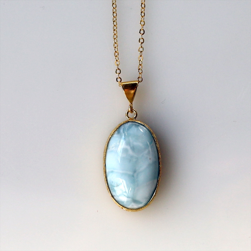 ラリマー ペンダント 22KGP カボション オーバル アルサメイア 天然石一粒ネックレス トルコジュエリー