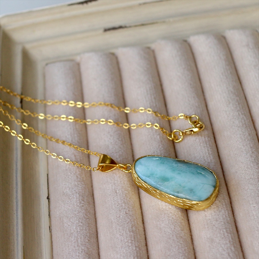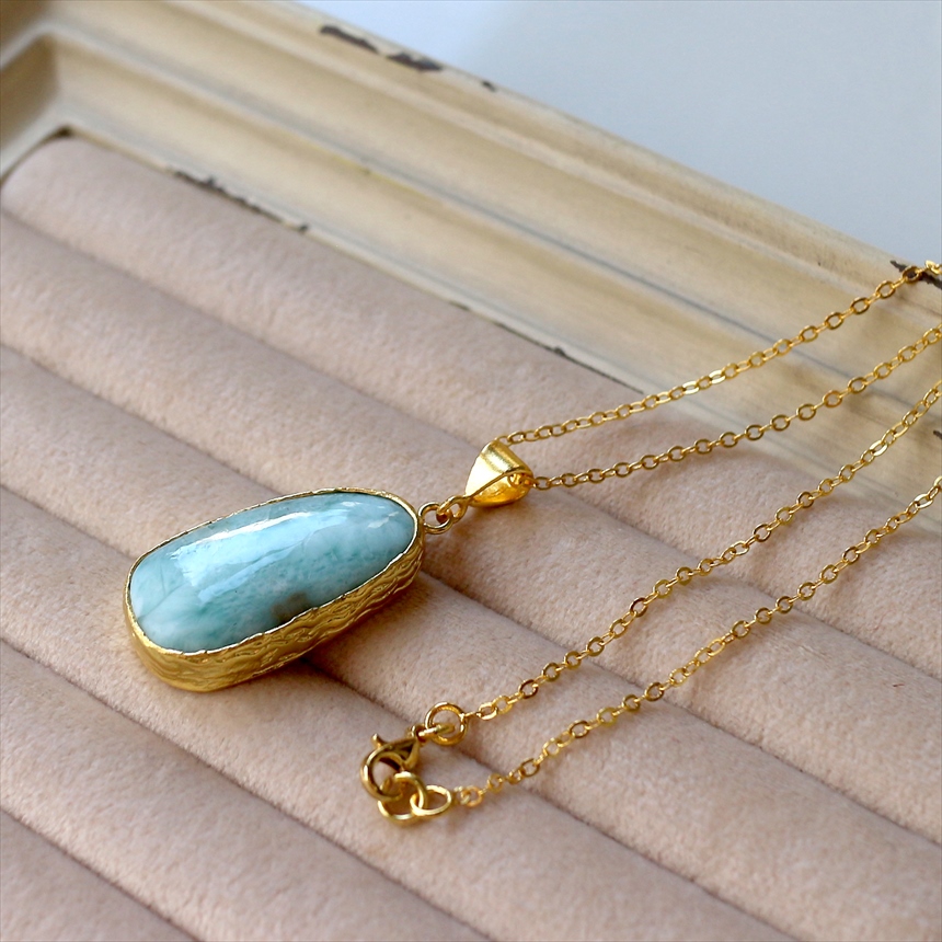 ラリマー ペンダント 22KGP カボション アルサメイア 天然石一粒ネックレス トルコジュエリー