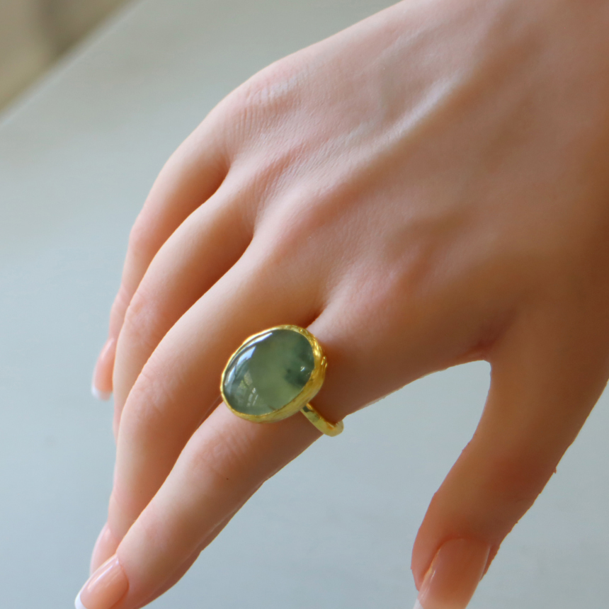 Key:ARSAMEIA, Turkish Jewelry, Color stone,イスタンブールジュエリー, トルコジュエリー,ゴールド, 天然石, 色石,ガラタバザール,大粒,ハンドメイド,カラーストーン,ひと粒,オーバルリング,,ニュアンスカラー,プレゼント,プレナイト