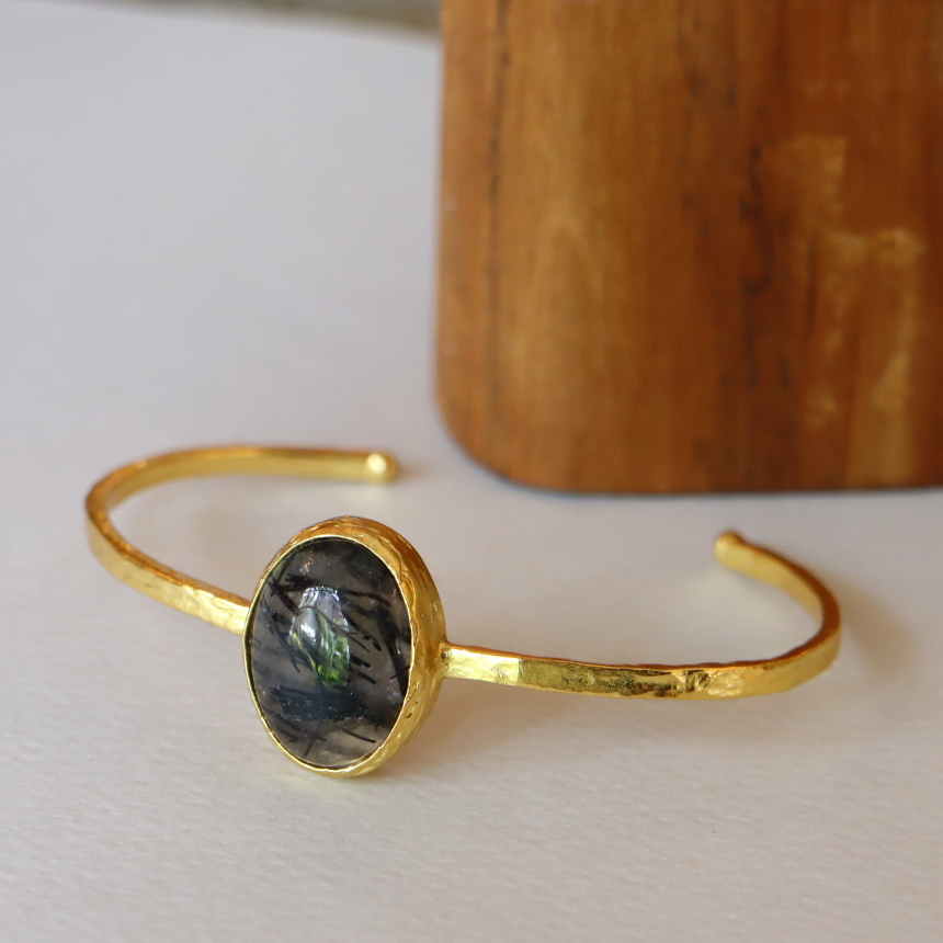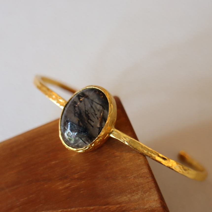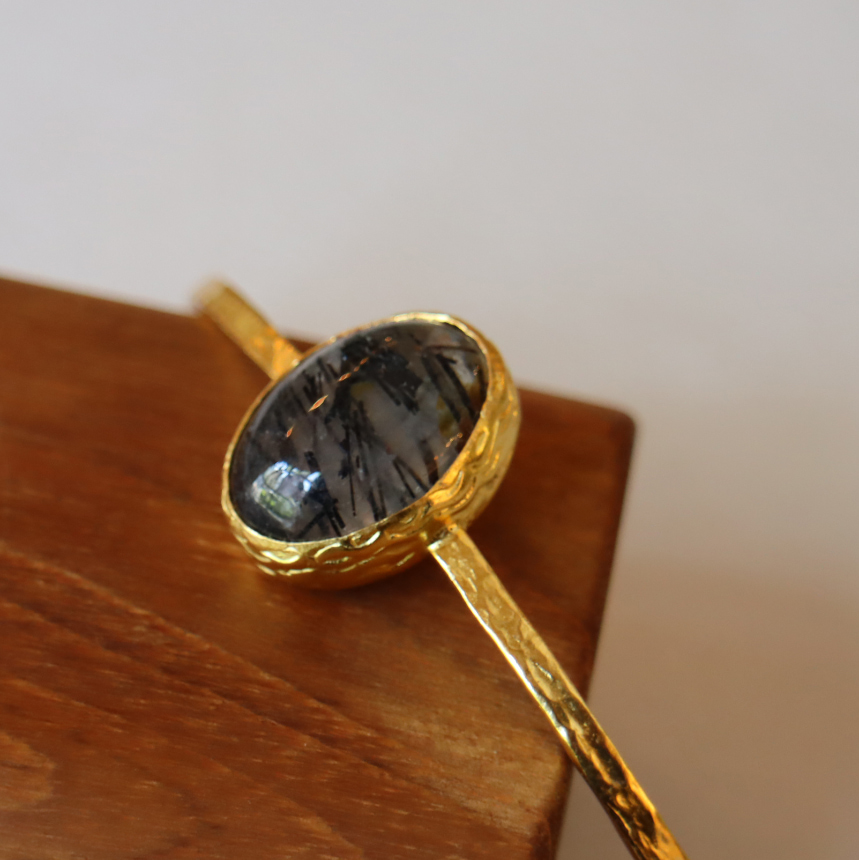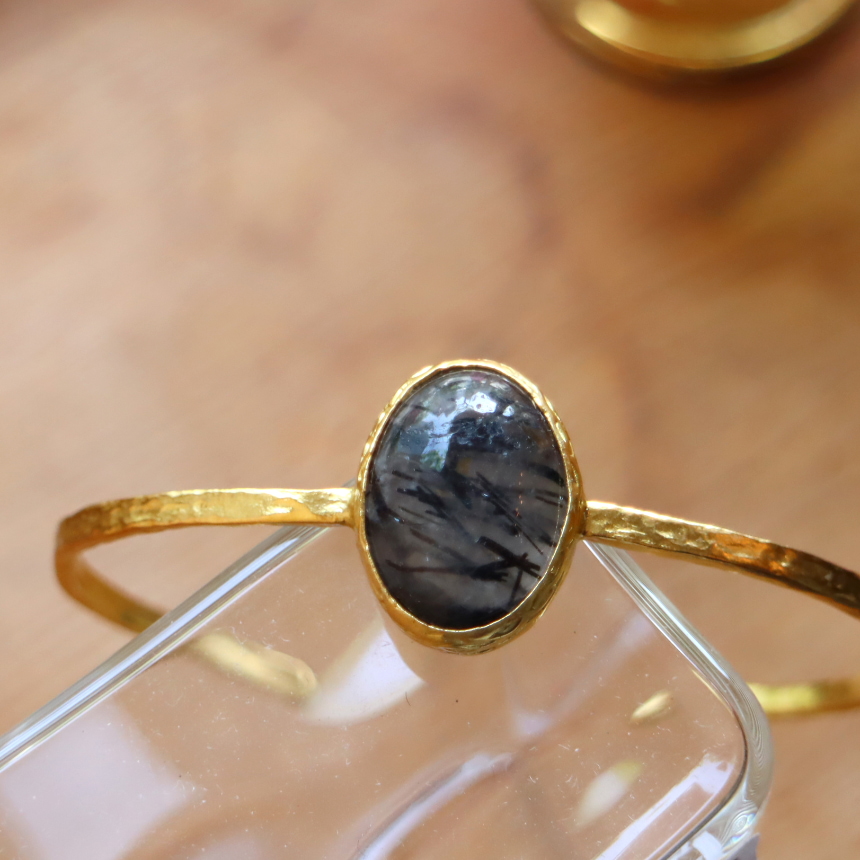 アルサメイア ブラックルチルクォーツ ビッグストーンバングル 天然石22KGP トルコジュエリードロップ