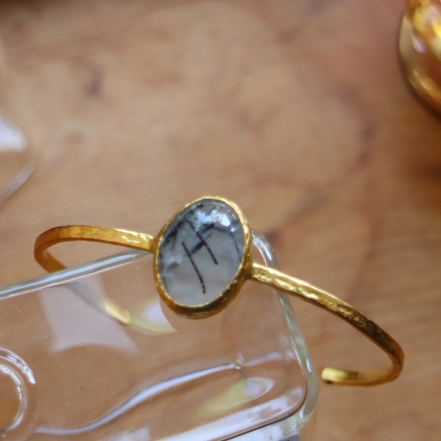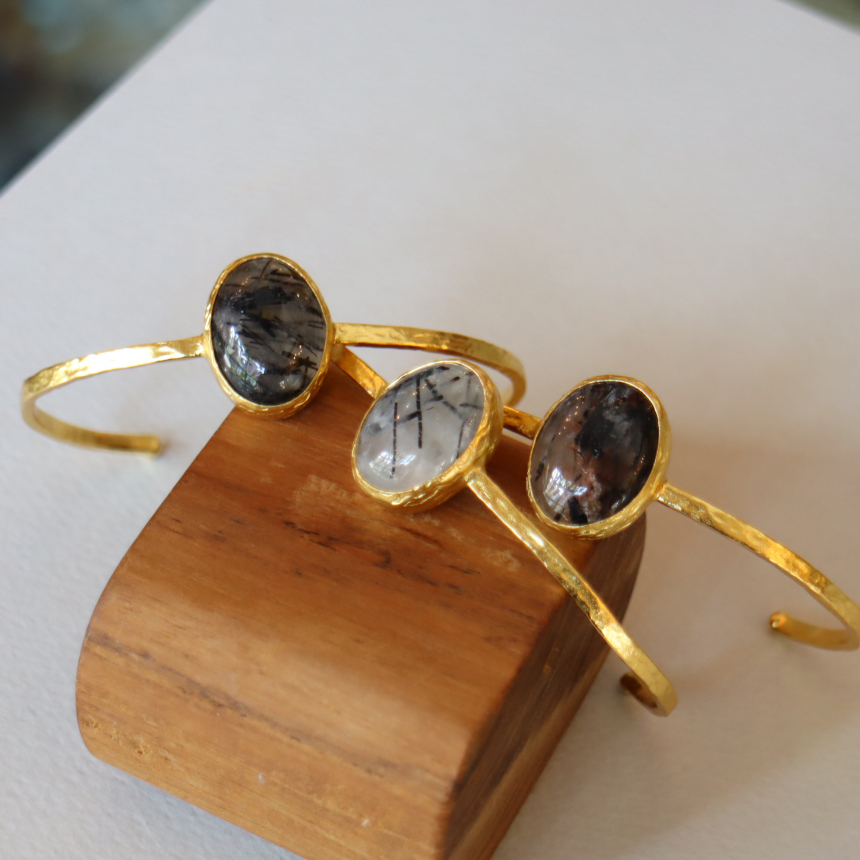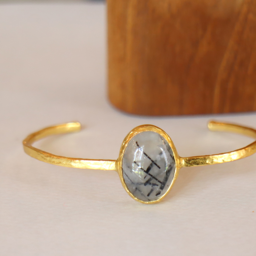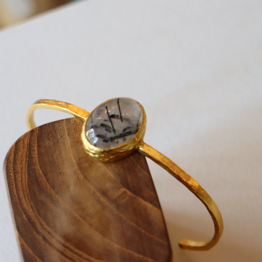 アルサメイア ブラックルチルクォーツ ビッグストーンバングル 天然石22KGP トルコジュエリードロップ