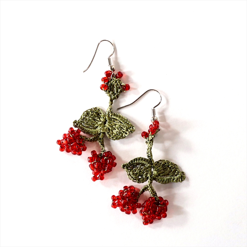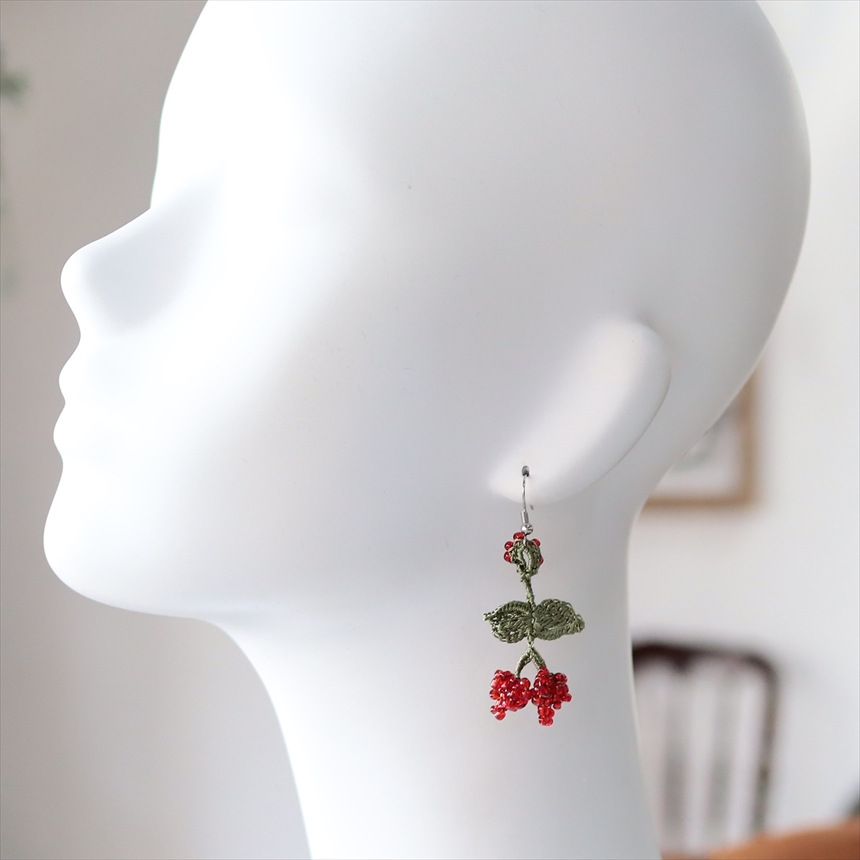 トルコのレース「オヤ」 ピアス さくらんぼ ボンジュックオヤ ハンドメイド