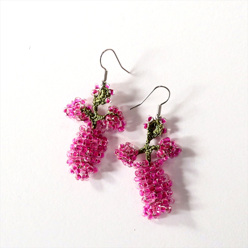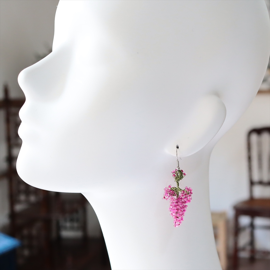 トルコのレース「オヤ」 ピアス ぶどう ピンク ボンジュックオヤ ハンドメイド