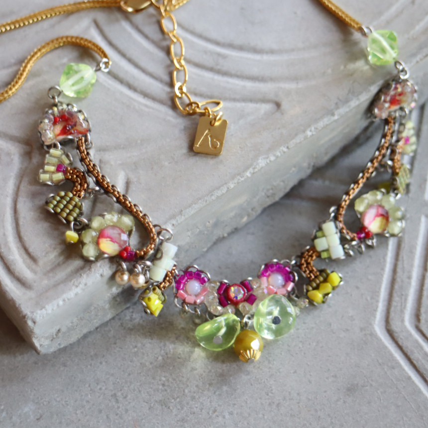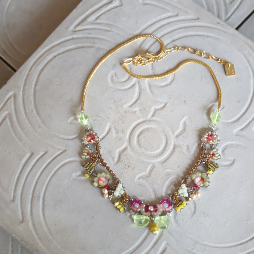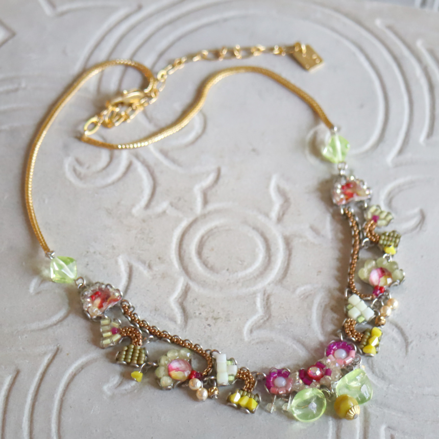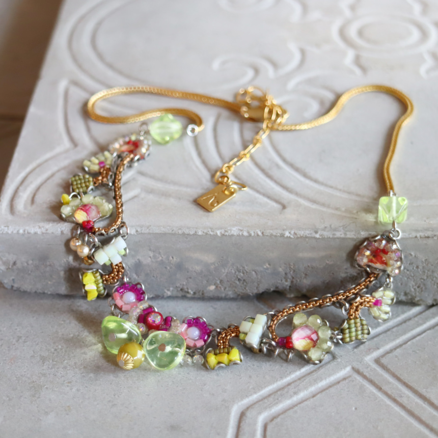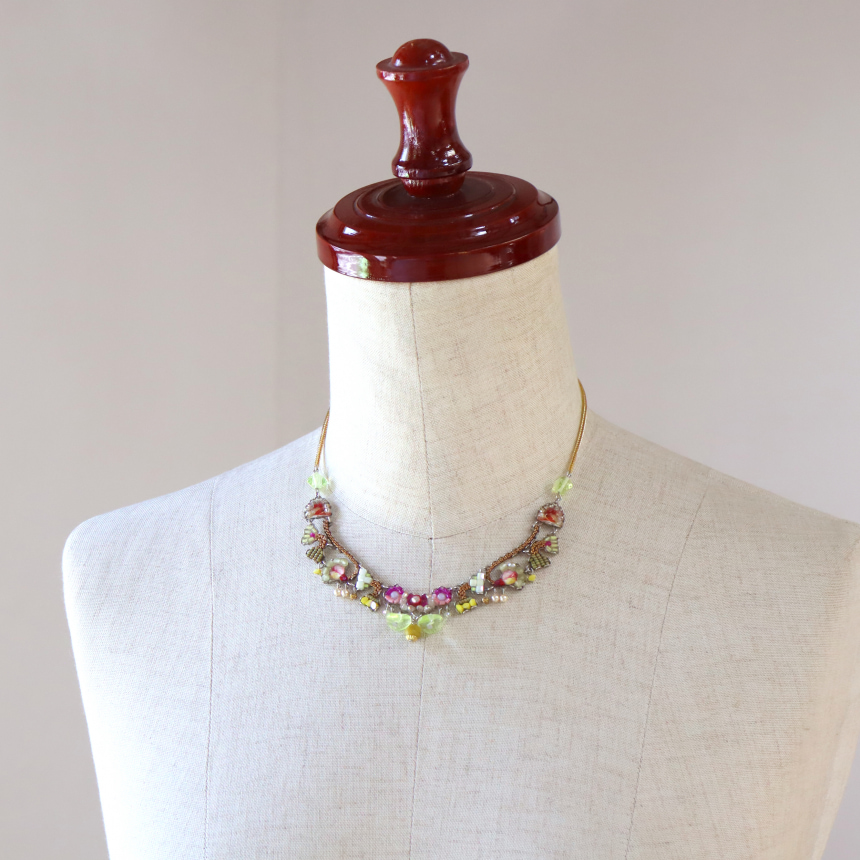 明るい色合いに遊び心あるパーツの組み合わせが魅力の、Lemonadeという名の通り、甘酸っぱい印象のシリーズ。淡い黄色系のビーズが揺れ、乳白色のパールとの組み合わせは、爽やかで清涼感があり、上品さと可愛らしさを感じるデザインのネックレスです。
