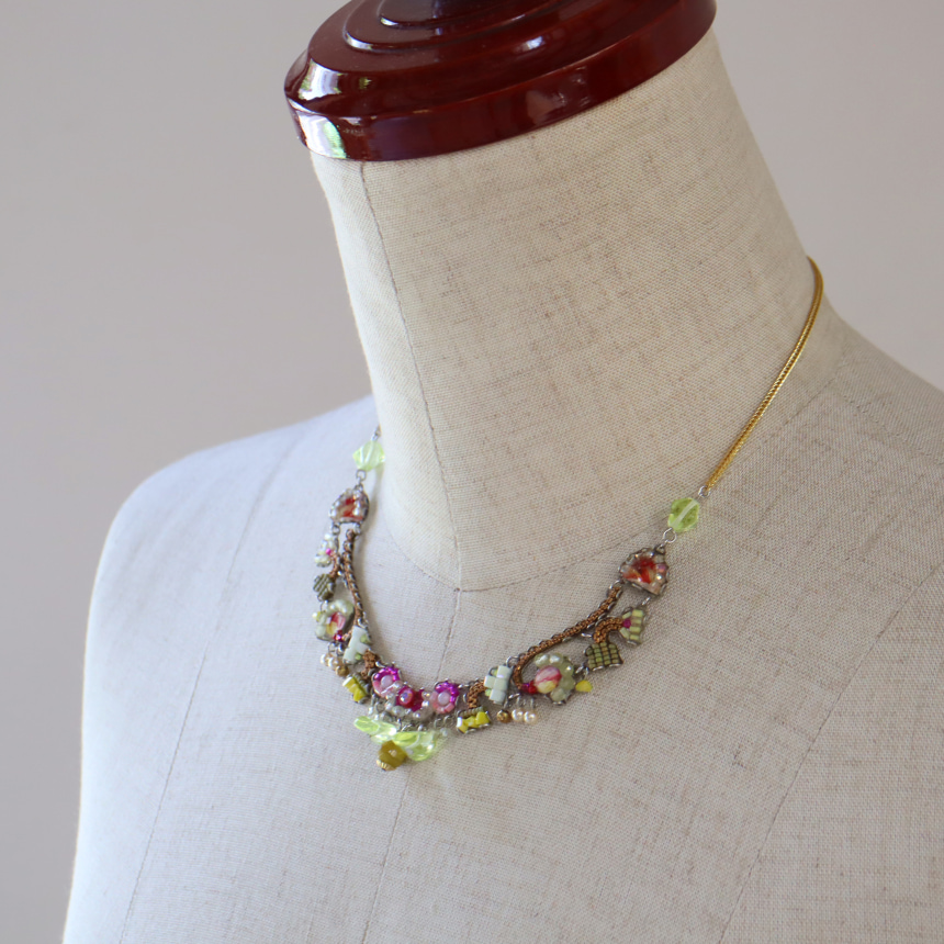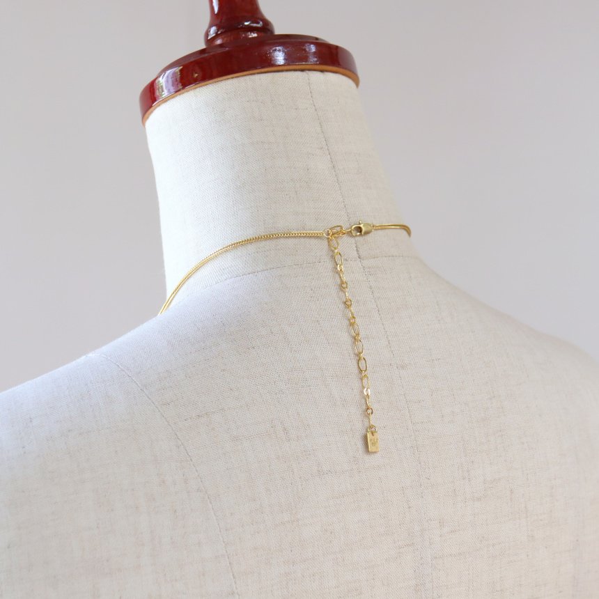 10cmのアジャスターで襟元にあわせて長さを調節できます。ゴールドのチェーンは、少しずつ落ち着いた色に変化します。