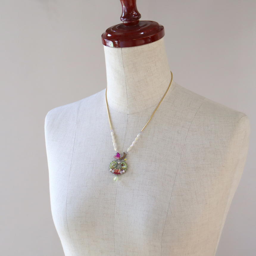 10cmのアジャスターで襟元にあわせて長さを調節できます。ゴールドのチェーンは、少しずつ落ち着いた色に変化します。