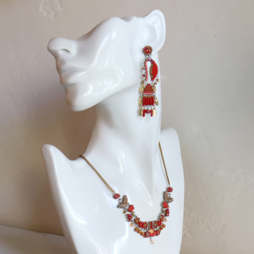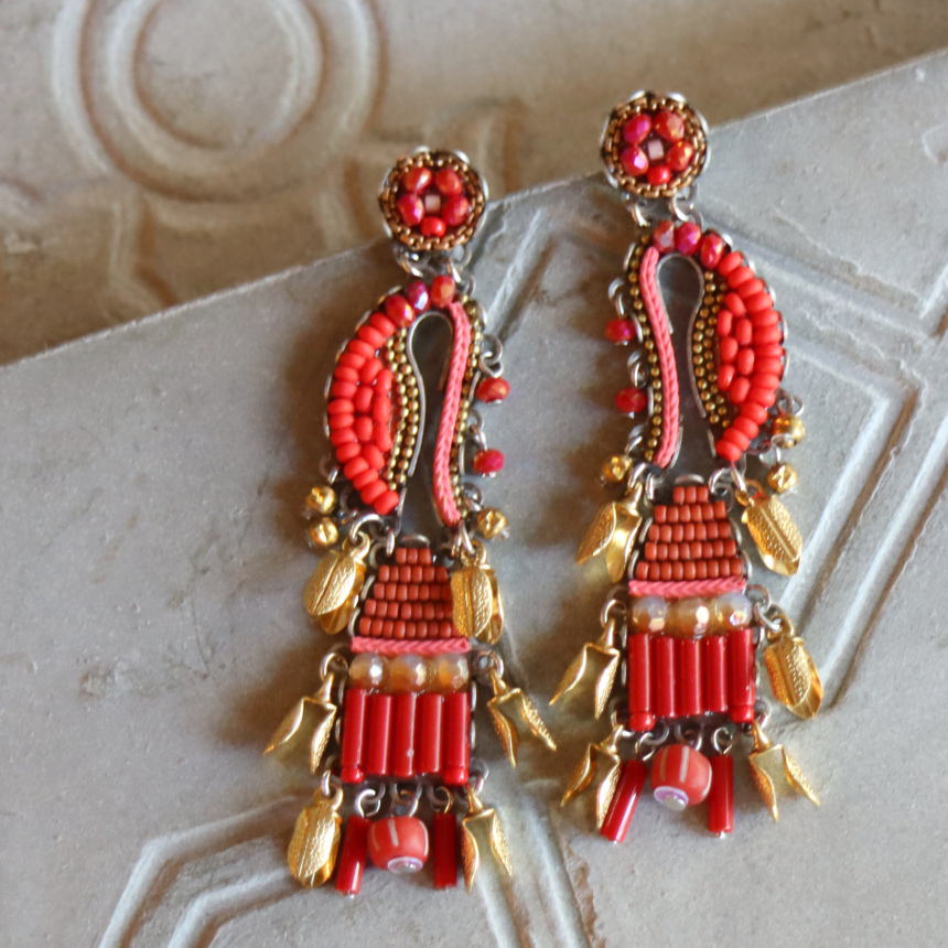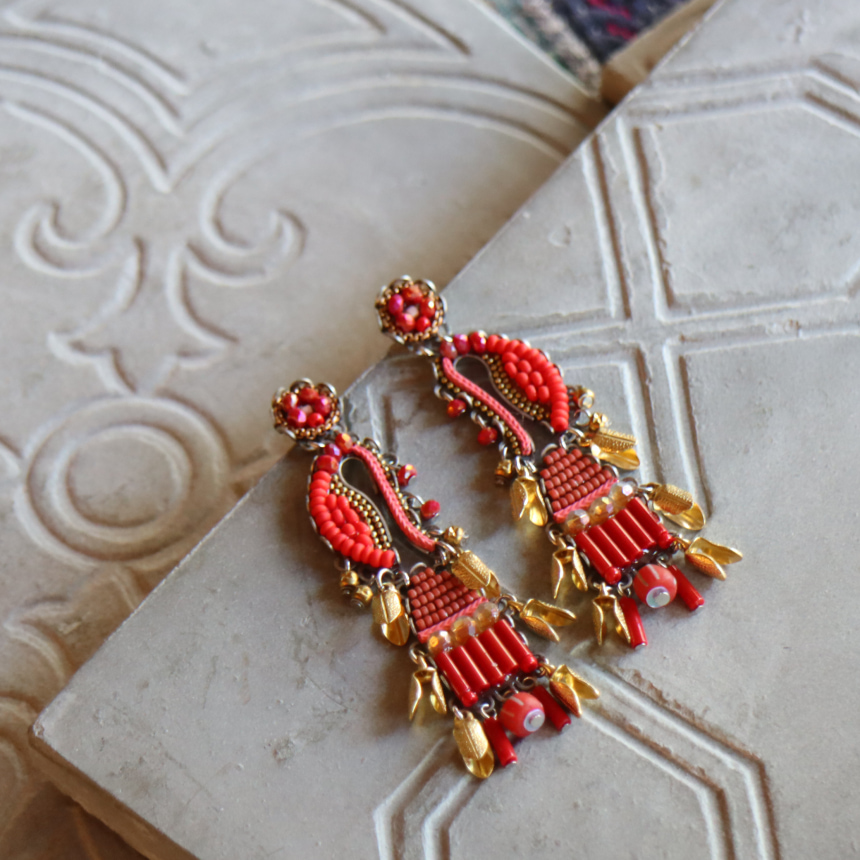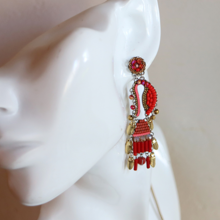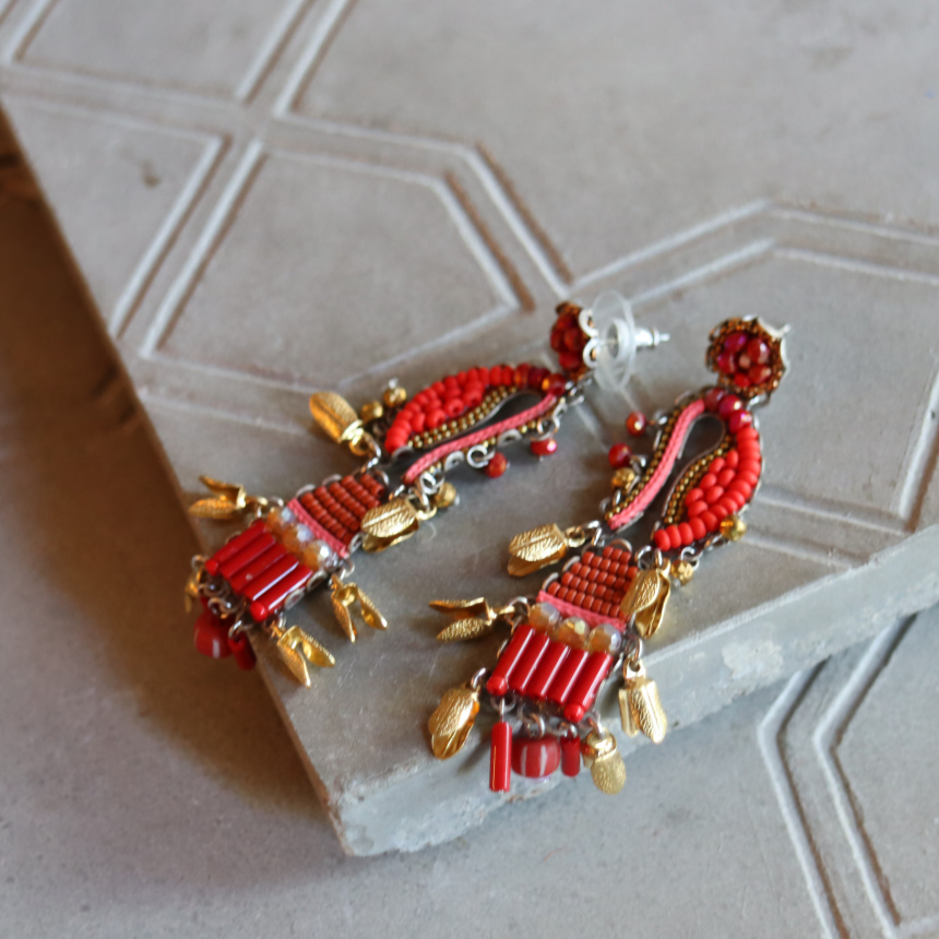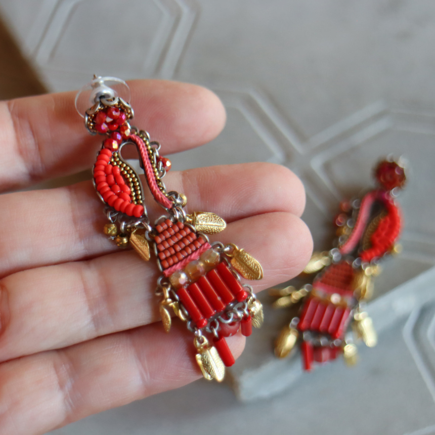 深みあるマットな質感のレッドグラデーションに、ゴールドパーツが揺れる、Radical Redという名のシリーズ。大胆で情熱的なデザインのピアスです。