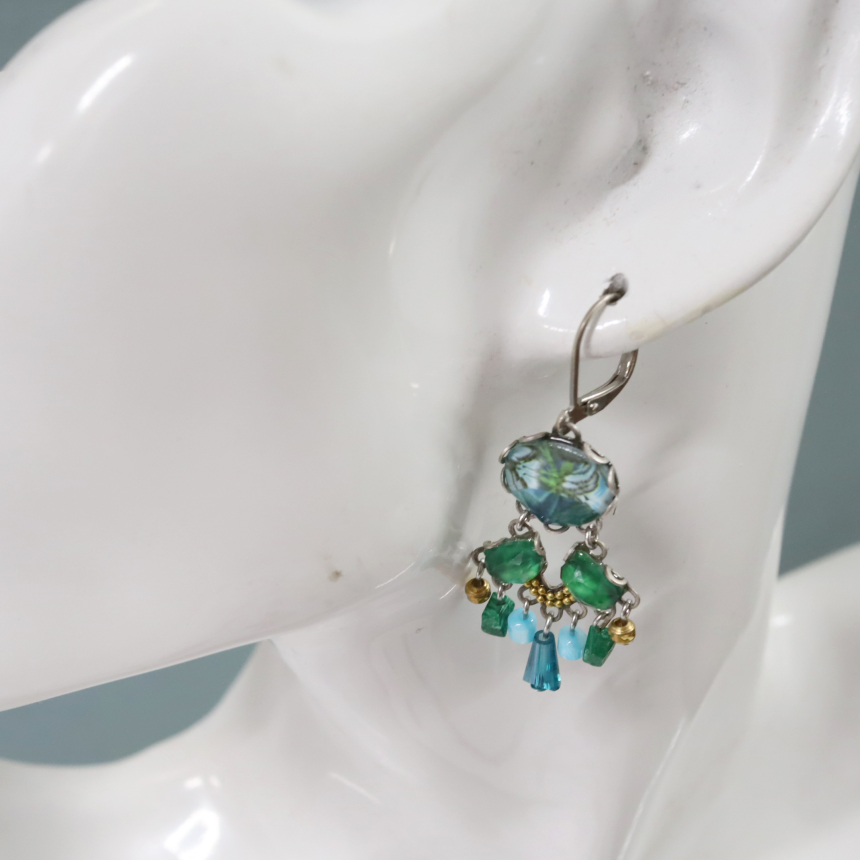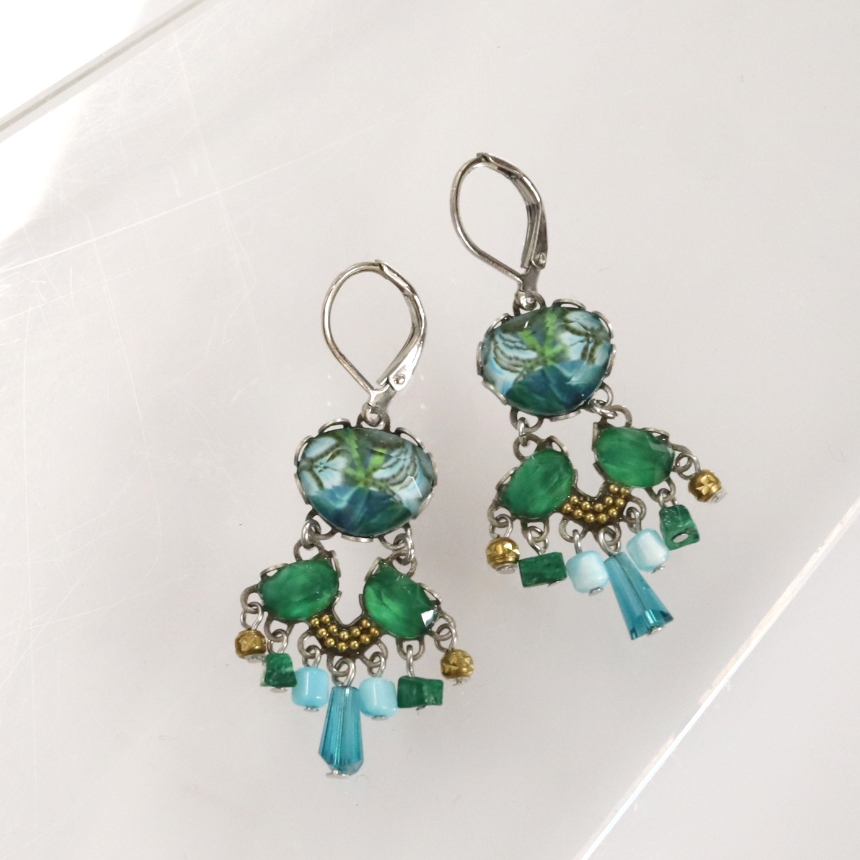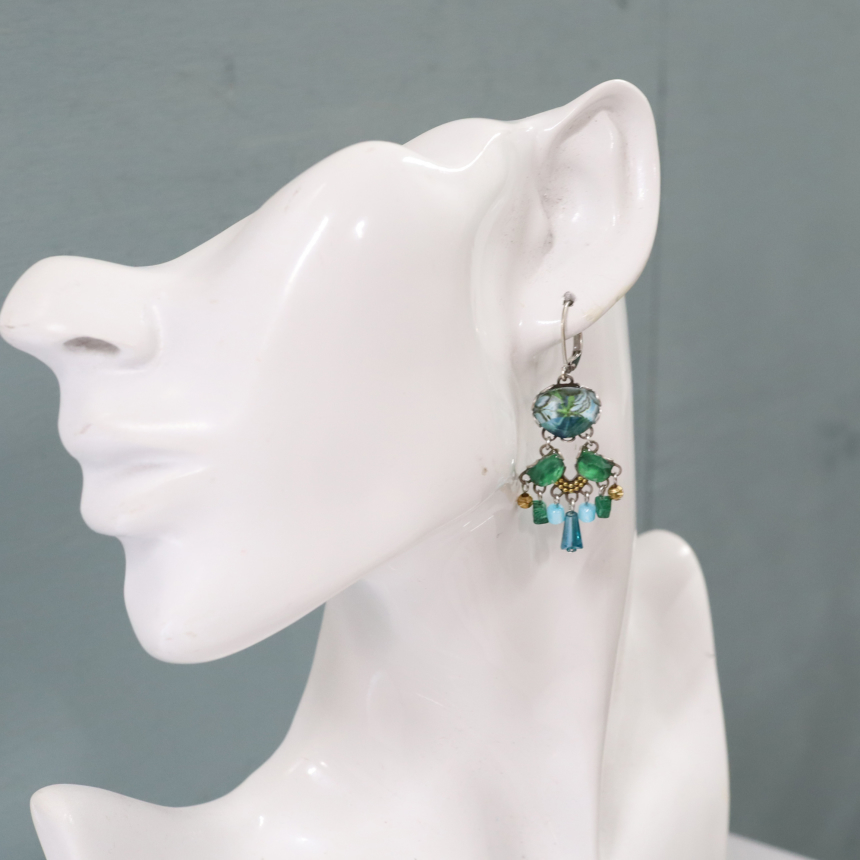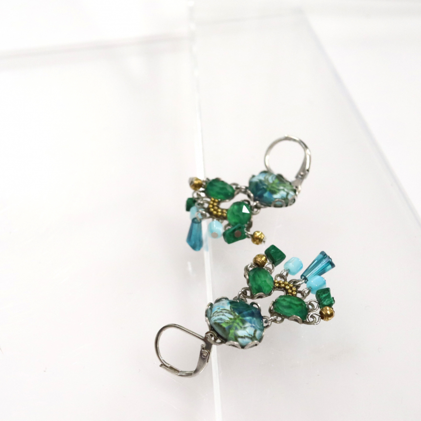 | 真鍮、ガラスビーズ、クリスタル、プリントファブリック |
